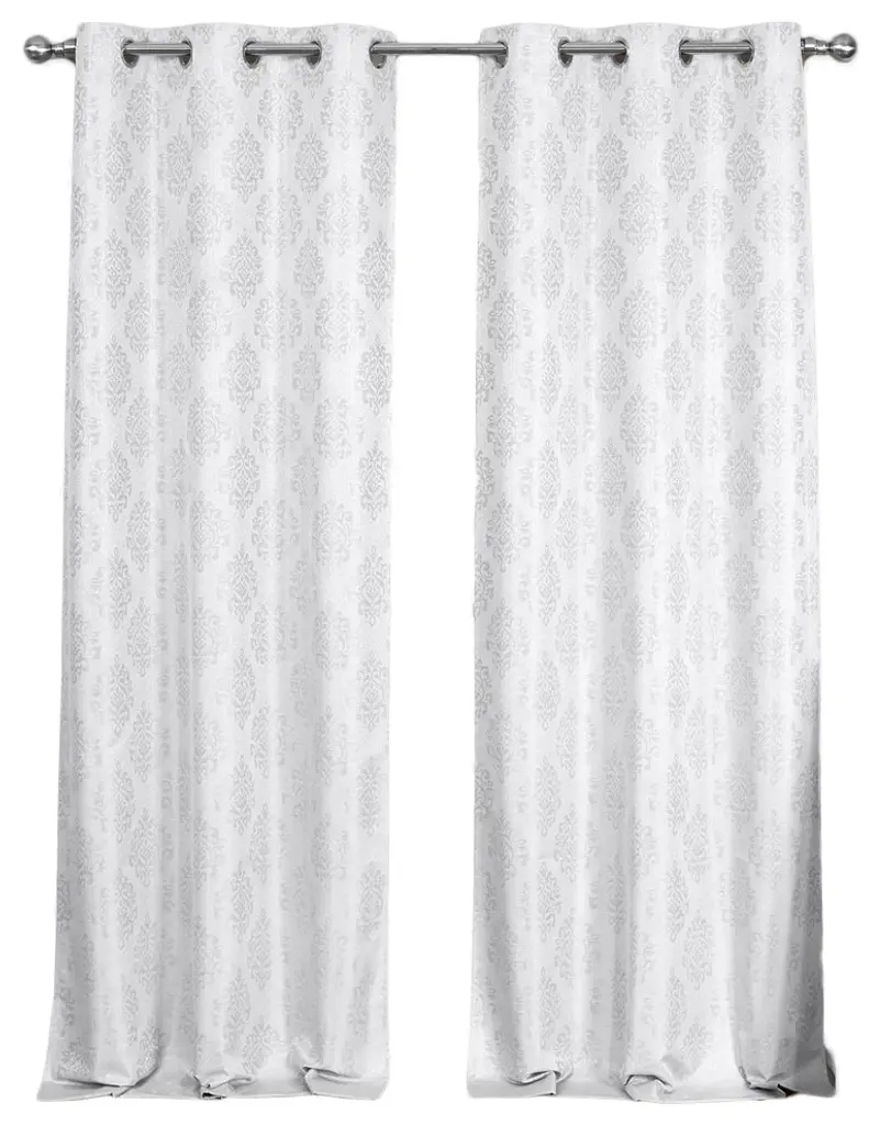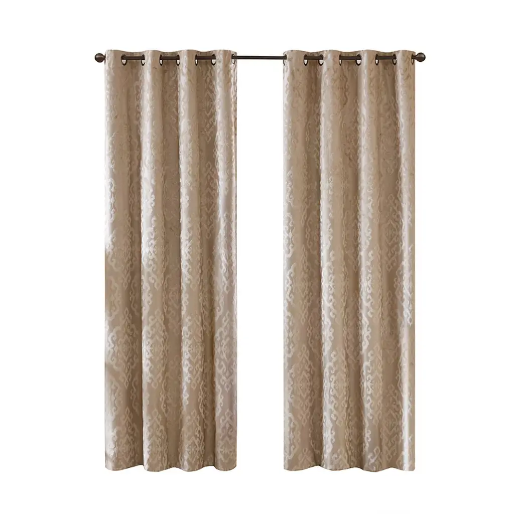 Relish the elegant glistening look of this Blair Jacquard Panels made from pure polyester in your living room or den. While forming the upscale look of fine draperies, these panels are machine-washable and easily maintained. The curtains have a damask pattern on either side in matching colors. Give your home decor the upgrade it needs with the classic jacquard panel pair featuring a beautiful jacquard paisley design.- 100% polyester- Panels add appeal and stylishness to any room- Curtains feature a damask pattern - Jacquard, Grommet- Machine-washableAvailable Sizes Include:- 108 x 63" (54 x 63" each.) (274cmX160cm) - 108 x 84" (54 x 84" each.) (274cmX213cm) - 108 x 96" (54 x 96" each.) (274cmX243cm)- 108 x 108" (54 x 108" each.) (274cmX274cm)- 108"W x 120"L (54 x 108" each.) (274cmX304cm)