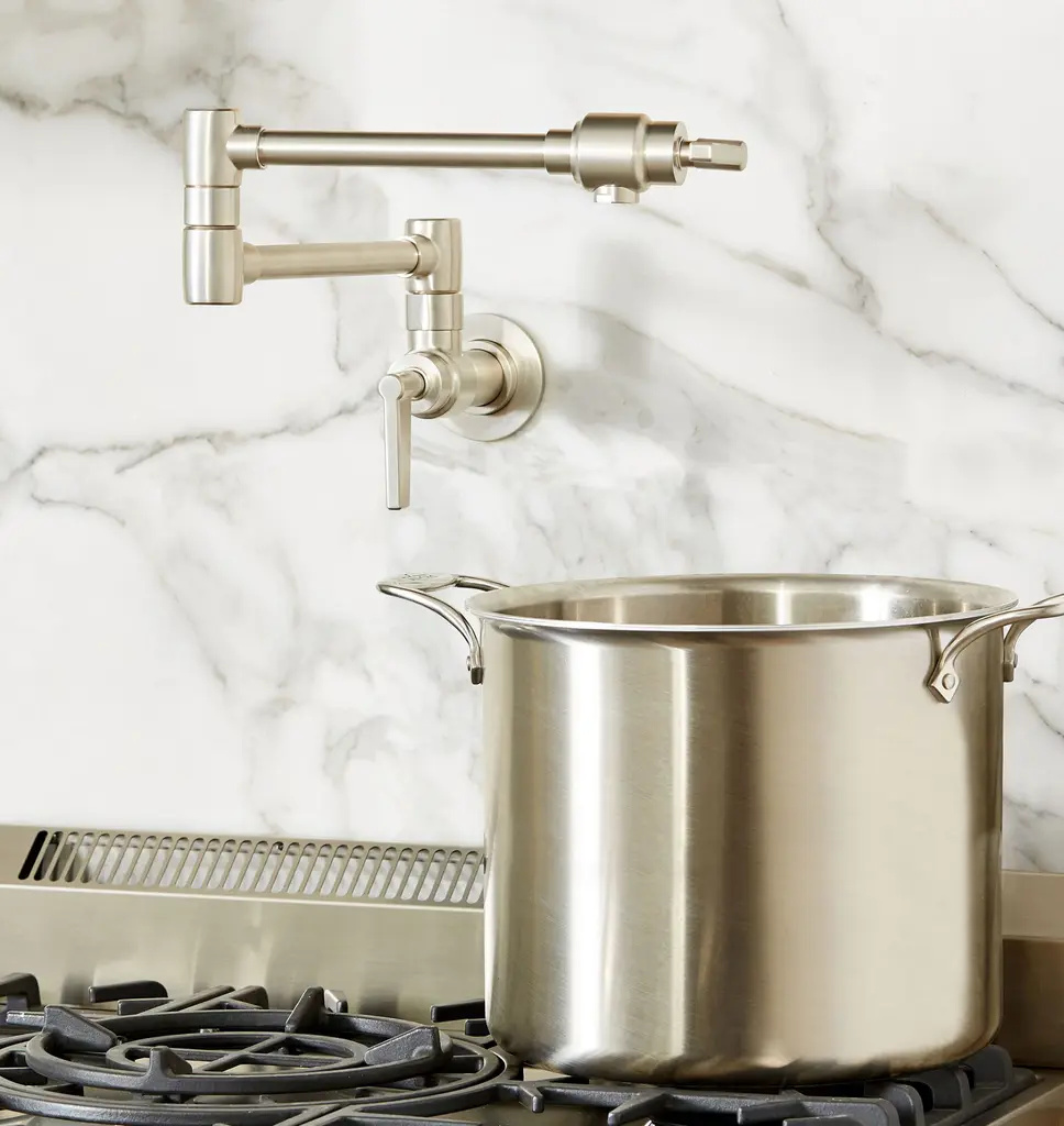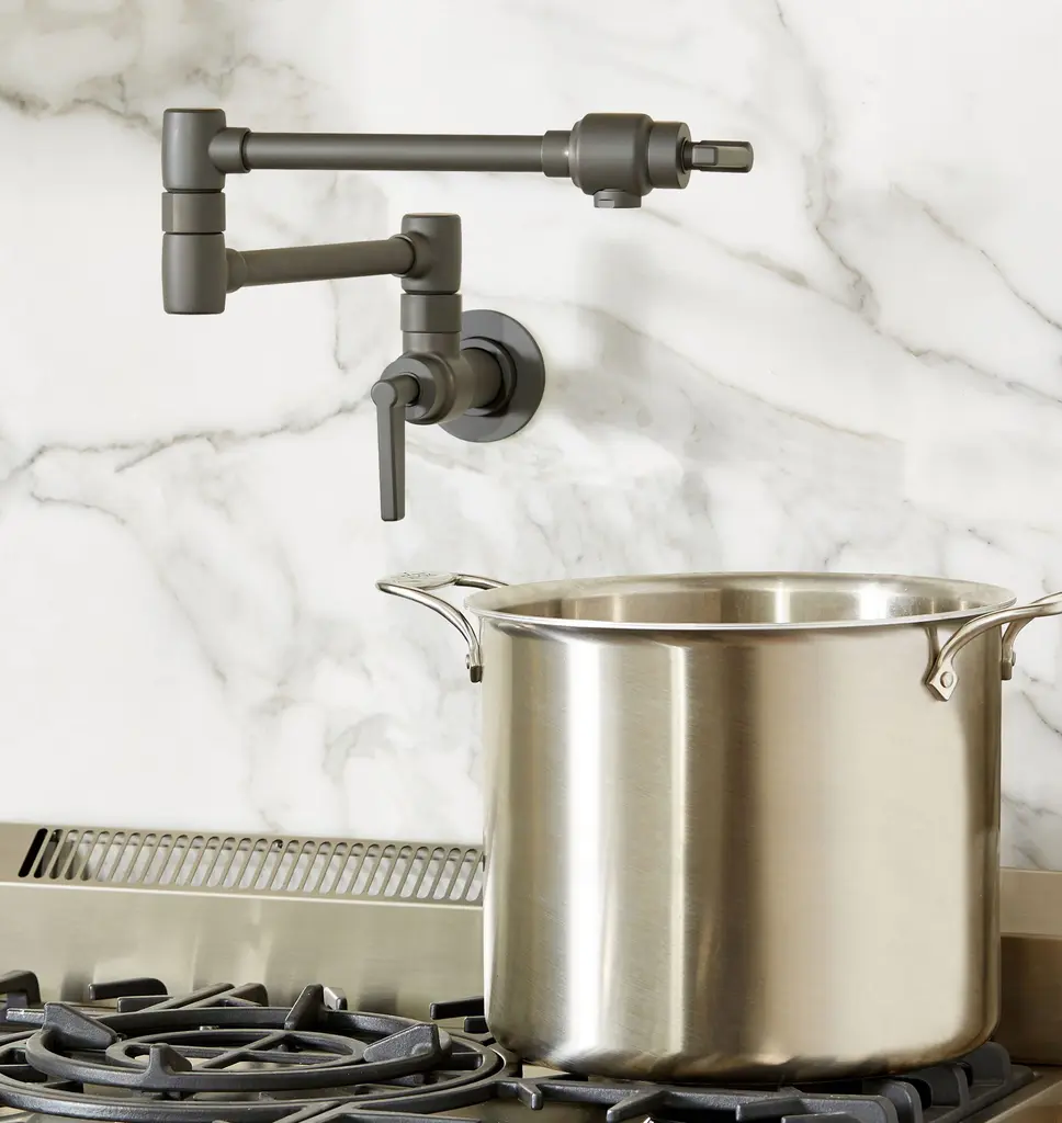 Made with solid brass, our Blair Deck Mount Pot Filler features an industrial-inspired cross-handle design with streamlined details. With a flow rate of 1.5 gallons per minute, Blair adds versatility and function to any kitchen cookspace.