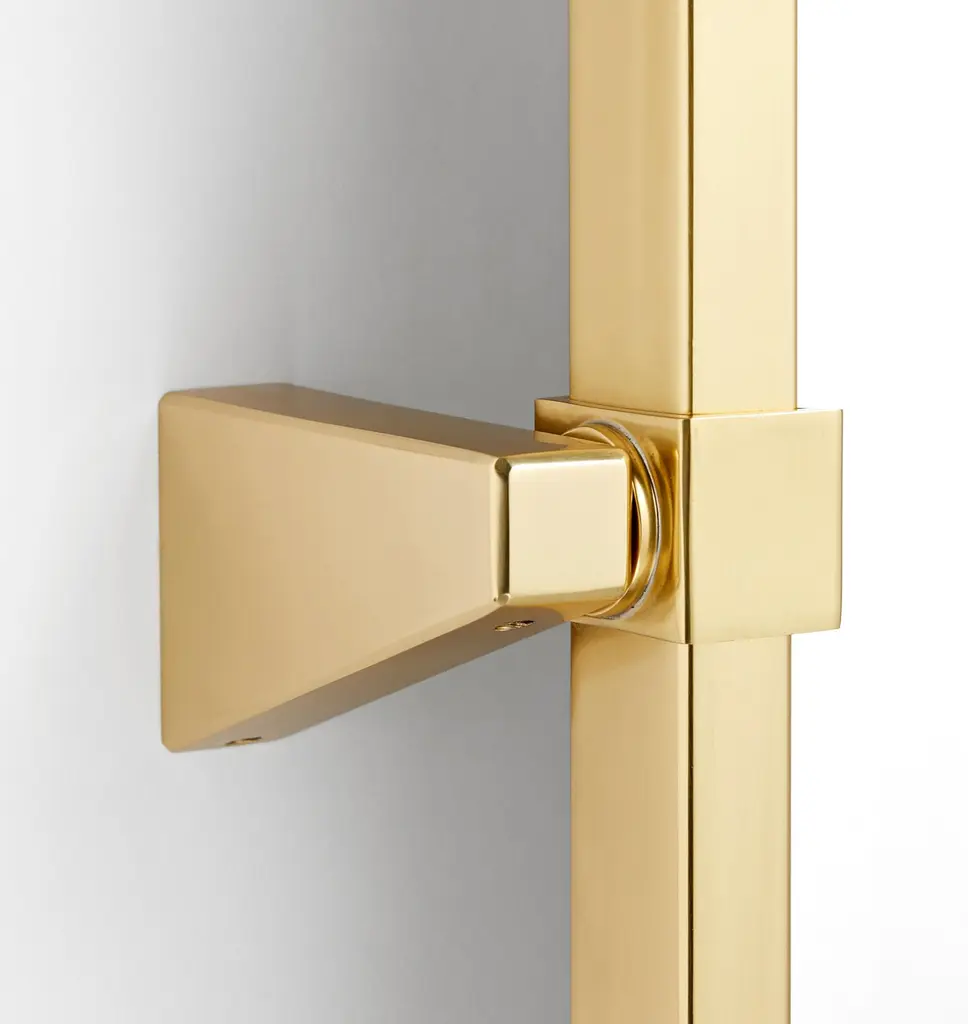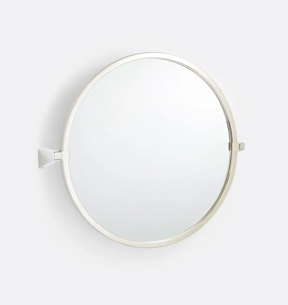 Designed to coordinate with our Blair Lighting and Hardware Collections, our solid brass Blair Pivoting Mirror features crisp, clean lines and a minimalist design. The versatile pivot functionality adds a sculptural touch to any bath environment. Available in several finish options. Details You'll Appreciate Crisp, clean design with pivot functionality Several finishes available Coordinates with our Blair Lighting & Hardware Collections Product Specifications Please note: This item will ship in multiple boxes Brass Mounting hardware included Imported