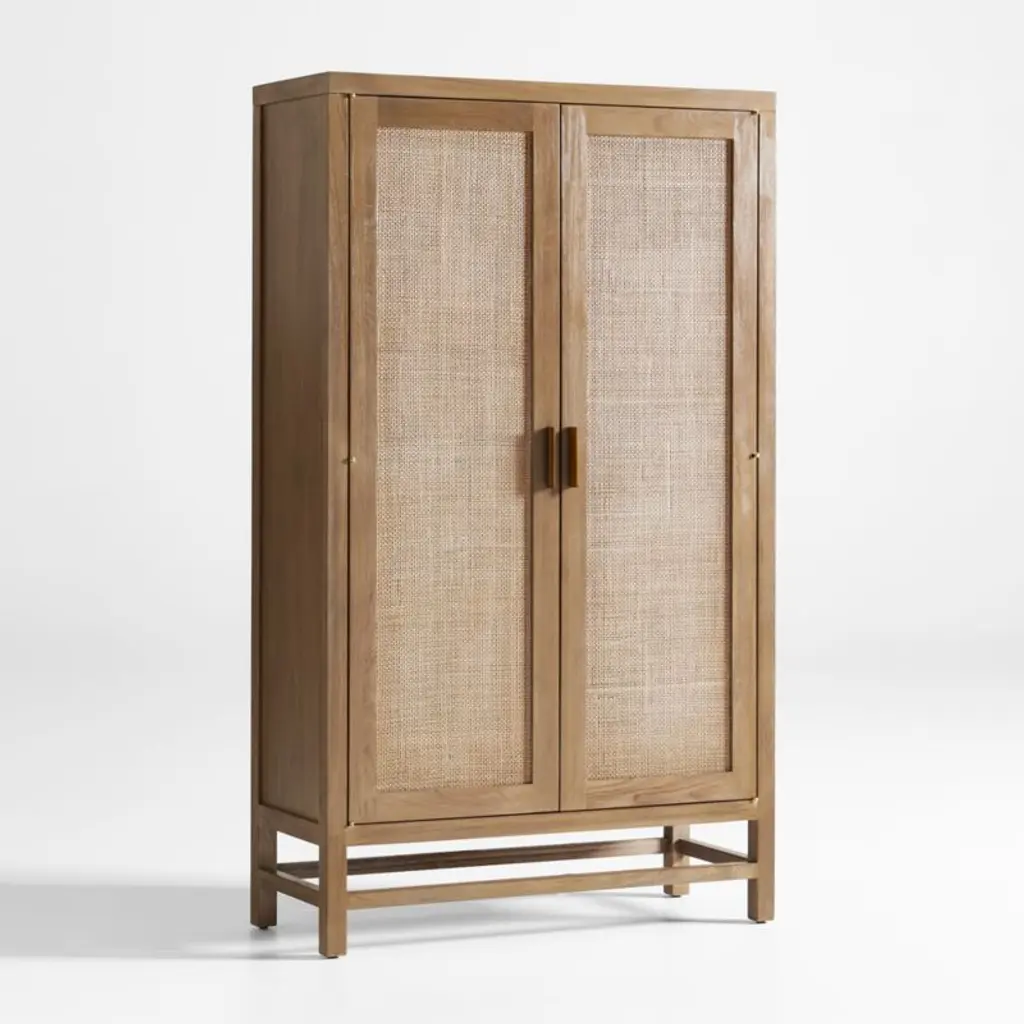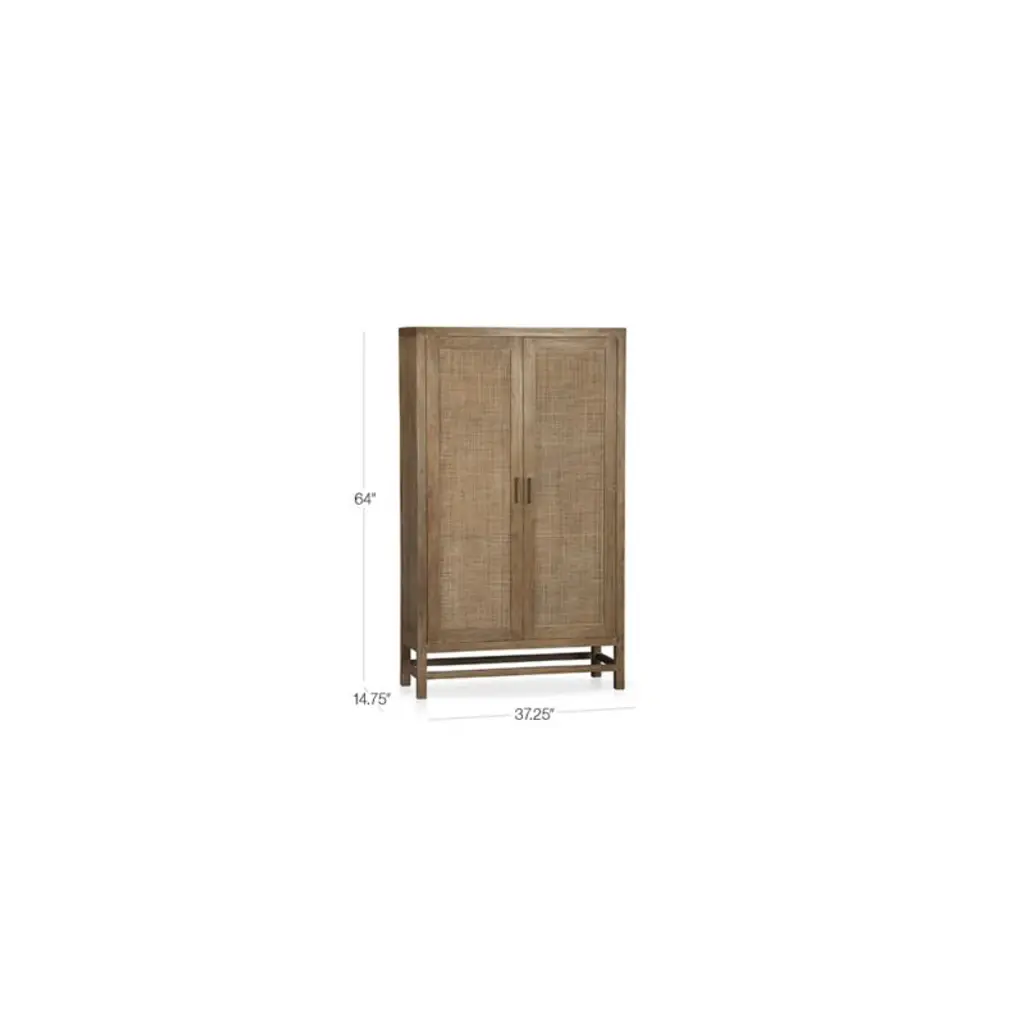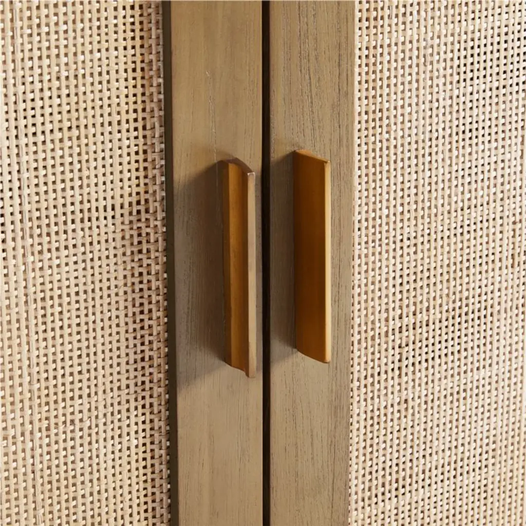 Blake 37" Light Brown Teak And Rattan 2-Door Storage Cabinet