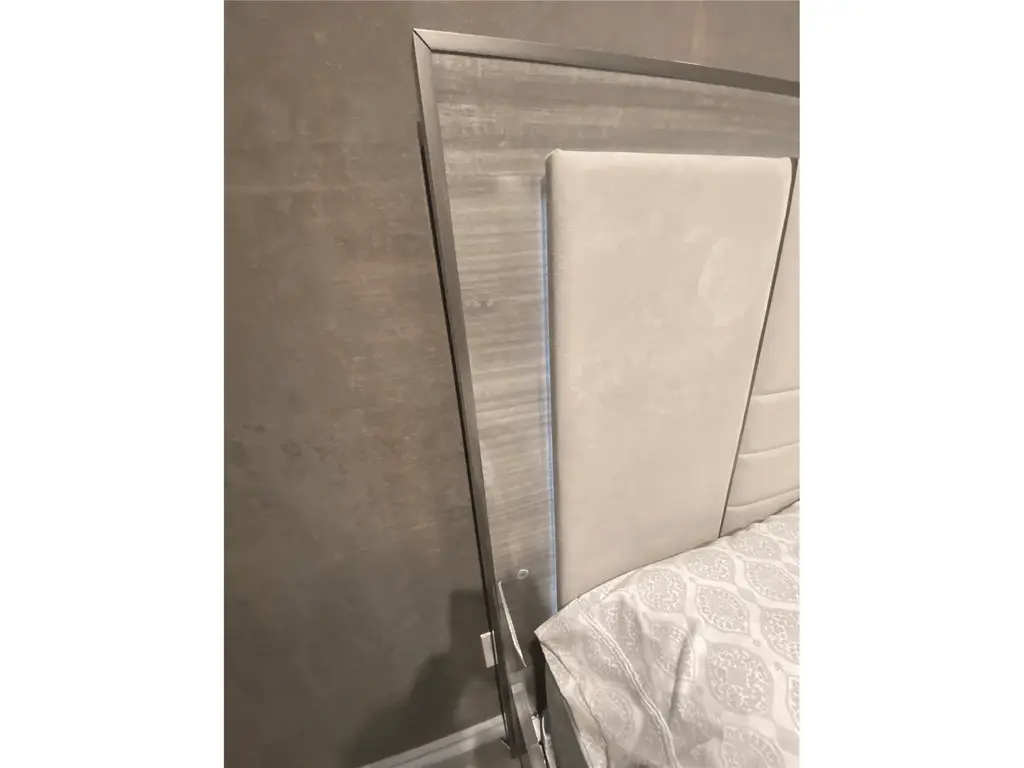 The Blake Bedroom Collection showcases an innovative and luxurious design created by the metal “blades” that start underneath the case goods and extend to the front to serve as handle for the drawers. The design is replicated on the headboard where two metal bars sink into a velvety upholstered panel. Hidden behind the edges of the panel there is a stripe of led lights that serve as courtesy lights operated by invisible switches located on each side of the headboard. These panels feature eucalyptus grain black stripes over a grey color with a glossy finish. This sophisticated modern-industrial design is a great addition to the furnishing of your house.