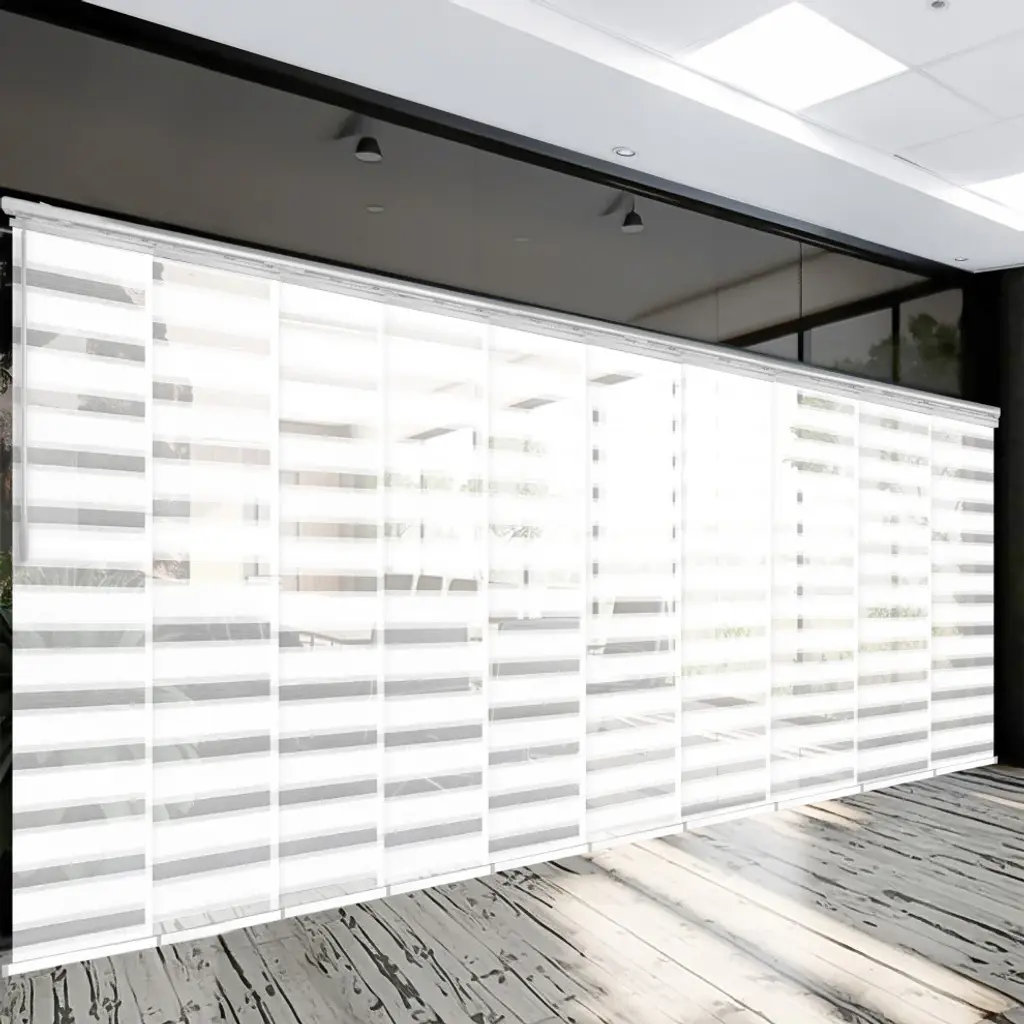 Blanched White 10-Panel Track Extendable Vertical Blinds 120-218"w