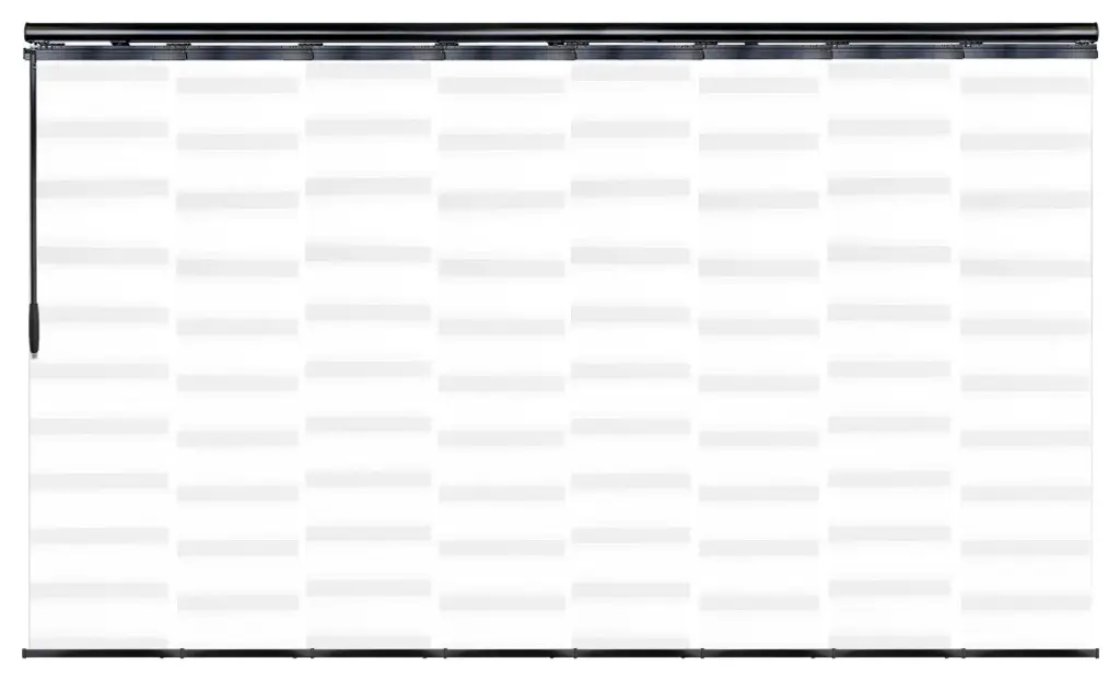 Central Design Products is pleased to introduce a new innovative panel track that offers easy 2-way installation, adding an alluring style and refined touch to your home decor. The double rail design of the track is sleek, compact, and reduces the overall footprint and weight of the installation, eliminating bulky, intrusive window treatments. Adjusting the panel height is a breeze � simply trim the panel, re-attach the liner, and install the panel weight. Detailed instructions are included.The panel track also features a patented slider design, made with aluminum and fitted with bearings that allow for durable and smooth operation. The sliders are stacked closer together than conventional panel tracks, reducing light bleed coming from the gaps between panels. This track has endless uses from dividing rooms, garages, offices, and closets to decorating windows and patios. Available in smaller sizes including 3, 4, 5, 6, and 7 panels. Extends from 130-175� wide. Each panel measures 23.5" wide and 116" tall, with a total installation height of 118.5" (includes the 2.5" rail track). The track can be wall or ceiling mounted. The panels can stack on the left or the right. The clearance from the wall is extendable from 1.25� to 3.25� and projection from the wall is extendable from 3� to 4.25�. Blanched White panel is made from 100% Polyester, with a light filtering shade that blocks 40% of the light.