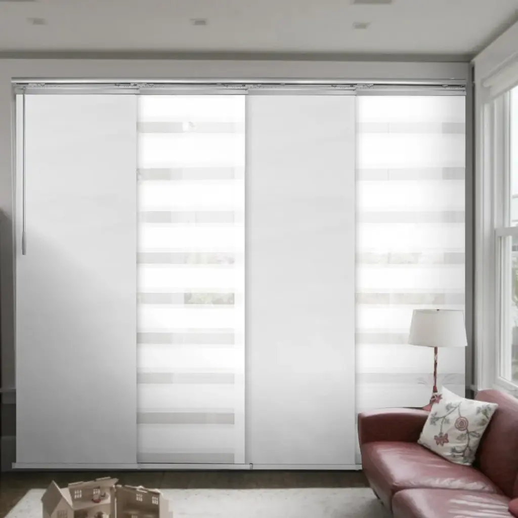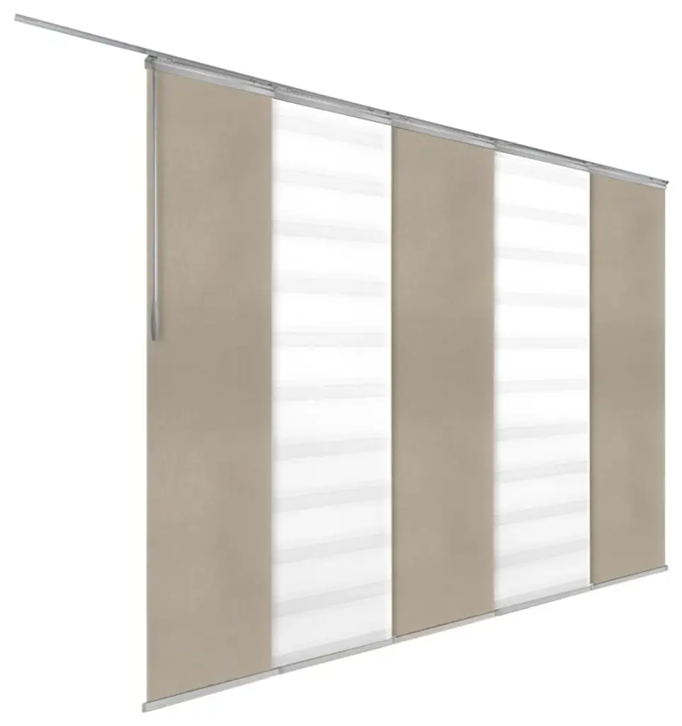 Central Design is pleased to announce the newly designed Panel Track, easily used as 2-way Vertical Blinds or Room Divider. Distinguished winner of the "2020 Good Design Award and 2021 MUSE Design Awards". Total Width is adjustable from 58-110". Individual Panel Size: 91.5" Height x 23.5" Wide. Overall Height including rail track is 94". The height of the Panel is adjustable by simply trimming the Panel and re-attaching the Liner and Panel Weight (Instructions provided). Wall or Ceiling mountable for versatility in its set up. Clearance (wall to the the back of Panel Track): extendable from 1.25"-3.25". Projection (wall to the furthest point): extendable from 3"-4.25". Single Rail Patented design; 1.25" thick for a very slick, thin, and compact design. No more bulky rail set ups. Made of steel for a durable and smooth operation of the Panels. Different from your standard panel track in that the sliders are designed in a more compact, overlapping fashion to reduce light bleed coming from in between the Panels. Track Material: steel. Panel Material: Polyester.More Panel Track sizes available & sold separately; 3-panel, 4-panel, 5-panel, 6-panel