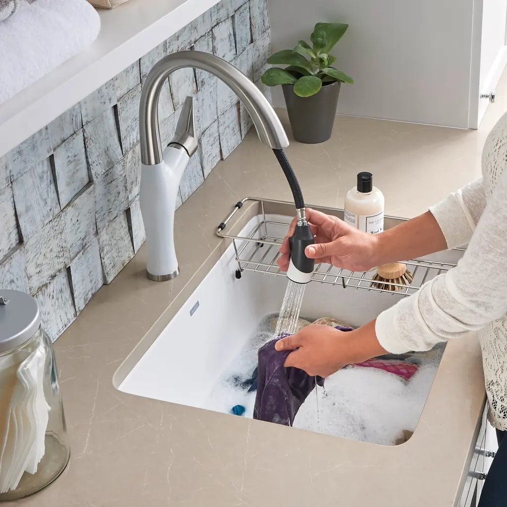 Every space deserves to be beautiful. BLANCO’s LIVEN laundry sink is specifically designed to address the unique needs of cleaning beyond the kitchen. Perfect for the laundry or mudroom, the extra-deep 12” bowl depth is ideal for soaking and scrubbing. Made of SILGRANIT, LIVEN sinks can handle the toughest of cleaning jobs. Strong and beautiful, SILGRANIT sinks are available in a range of nature-inspired colors that effortlessly complement the latest design trends. Combine the LIVEN laundry sink with a BLANCO faucet and accessories to create a BLANCO UNIT; a seamlessly integrated solution designed to transform chores into joyful experiences. Everything you need, all in one place.Blanco KA-401927 Features:Blanco KA-401927 Specifications: