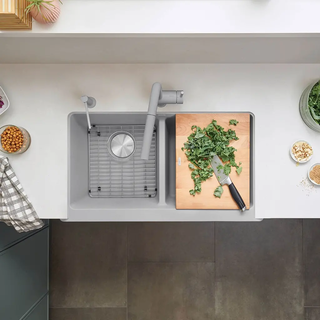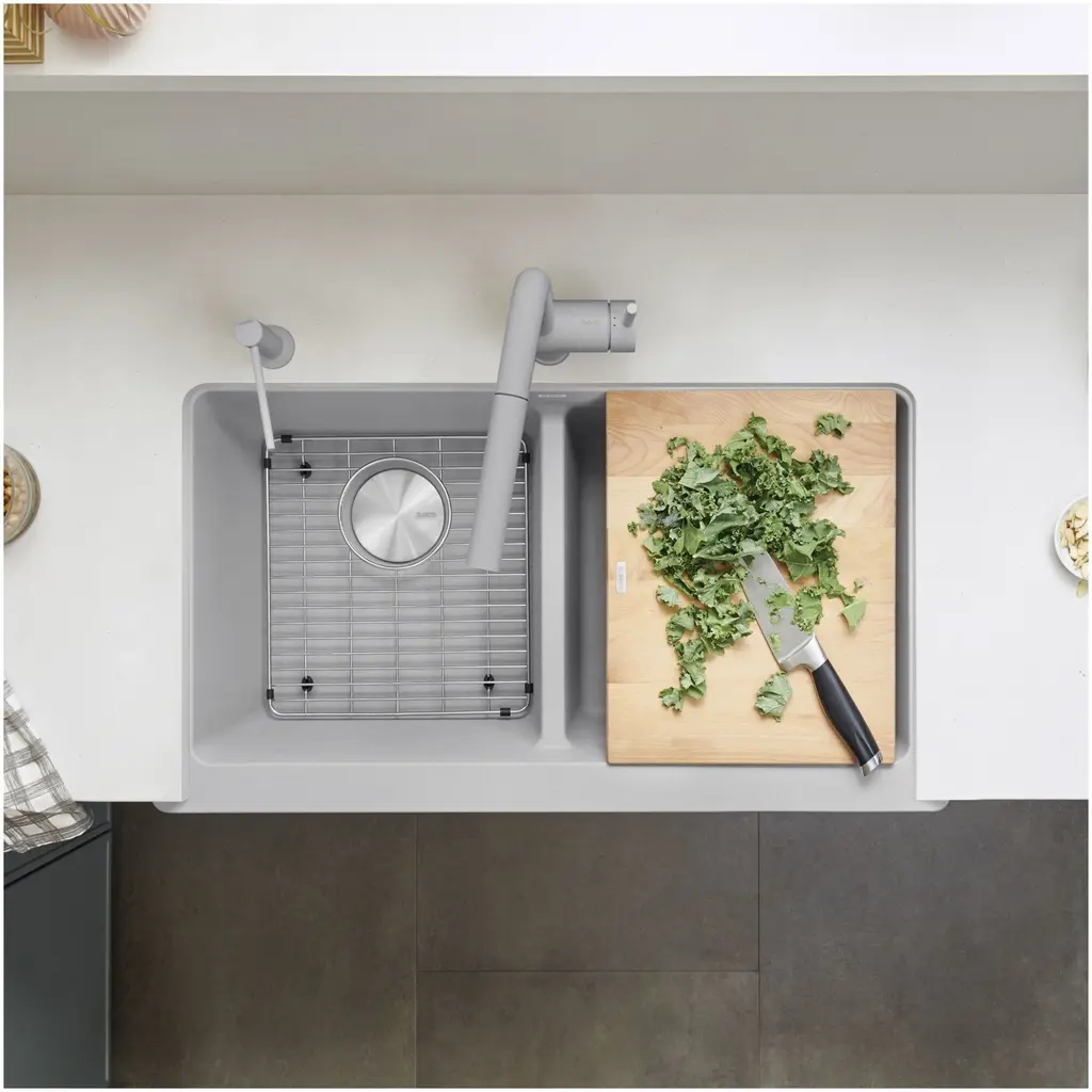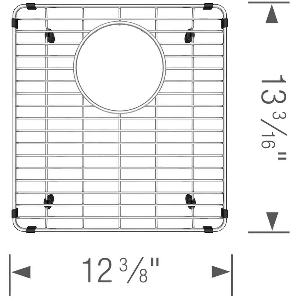 Blanco's stainless steel grids are custom designed to protect your kitchen sink from dishes and utensils. Made to complement the unique shape of your Blanco sink, this basin rack is made to measure, so it�s always the perfect fit. The grid sits on the bottom of your sink on non-skid protective and allows water to drain below the dishes. The stainless steel grid's sides are also finished with protective bumpers. Keeping your kitchen sink looking flawless, the sink grid is also ideal for rinsing stacked plates or preparing vegetables, and also provides a convenient in-sink drying rack for glassware, utensils and plates.Blanco 239955 Features:Blanco 239955 Specifications:
