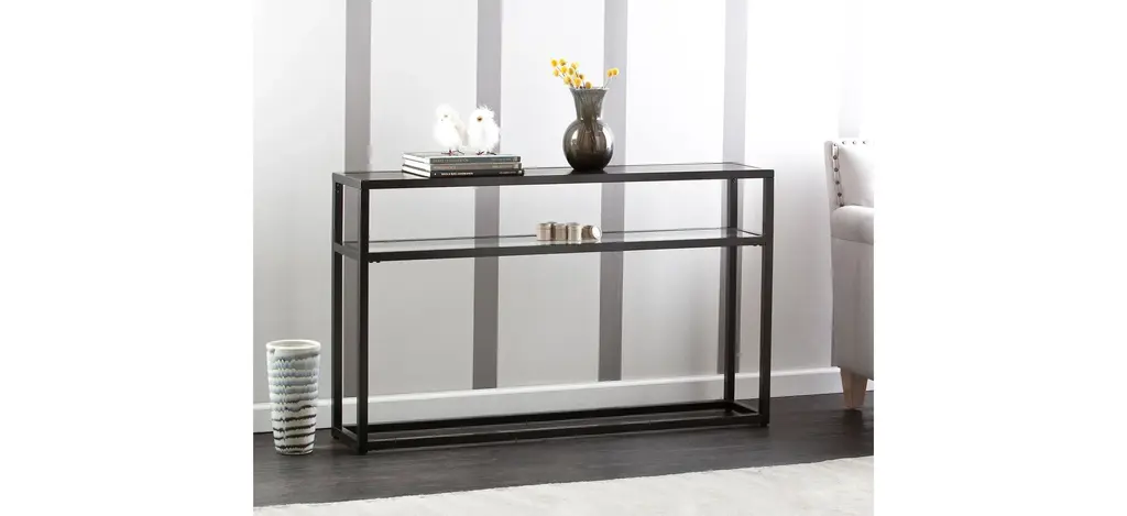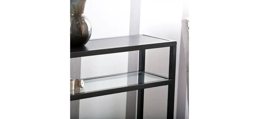 The Bligh Console Table makes smart use of small spaces or open floor plans. Clean, linear frame and glass shelf bring a light footprint with major functionality to the table. Welcome guests at the door, host movie night beneath your big screen, or show off your favorite treasures anywhere.