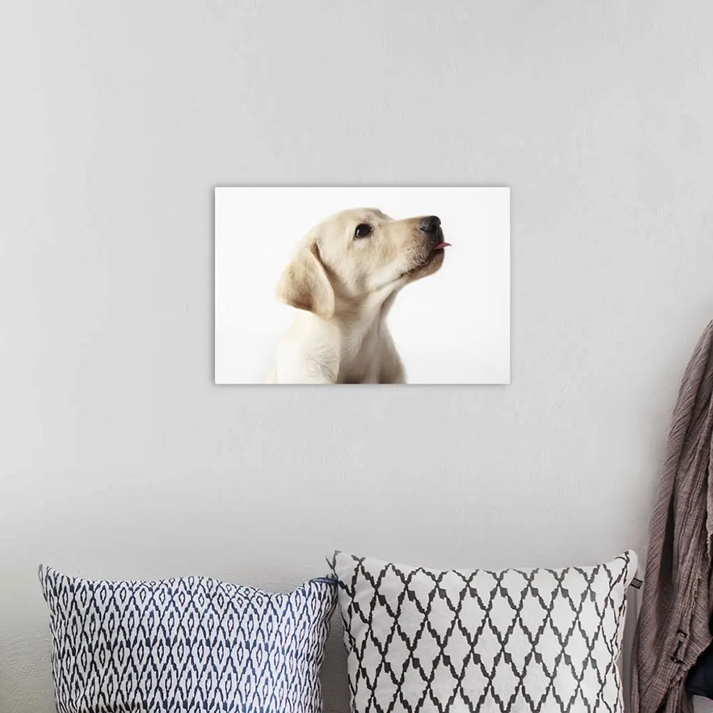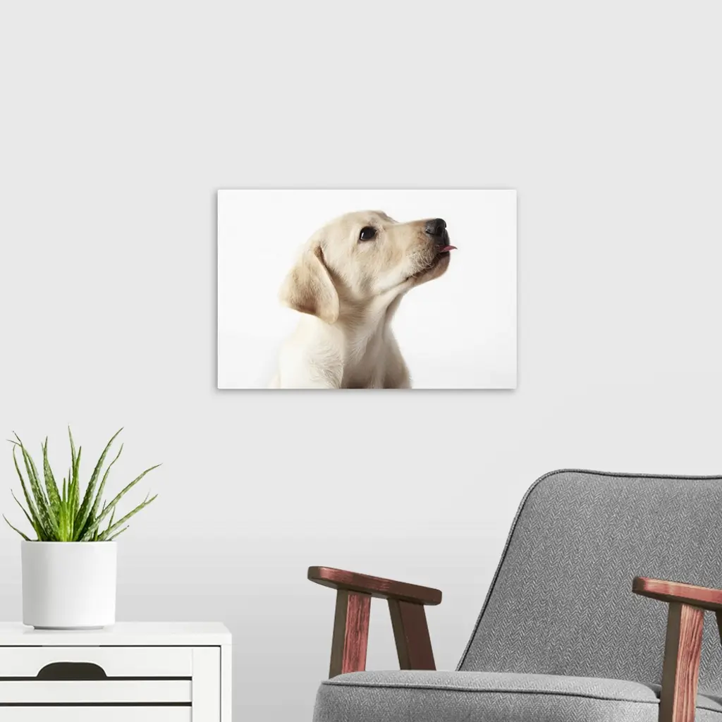 Blond Labrador puppy sticking out tongue wall art for home and office decor. Discover canvas art prints, photos, mural, big canvas art and framed wall art in GreatBigCanvas.com's varied collections.