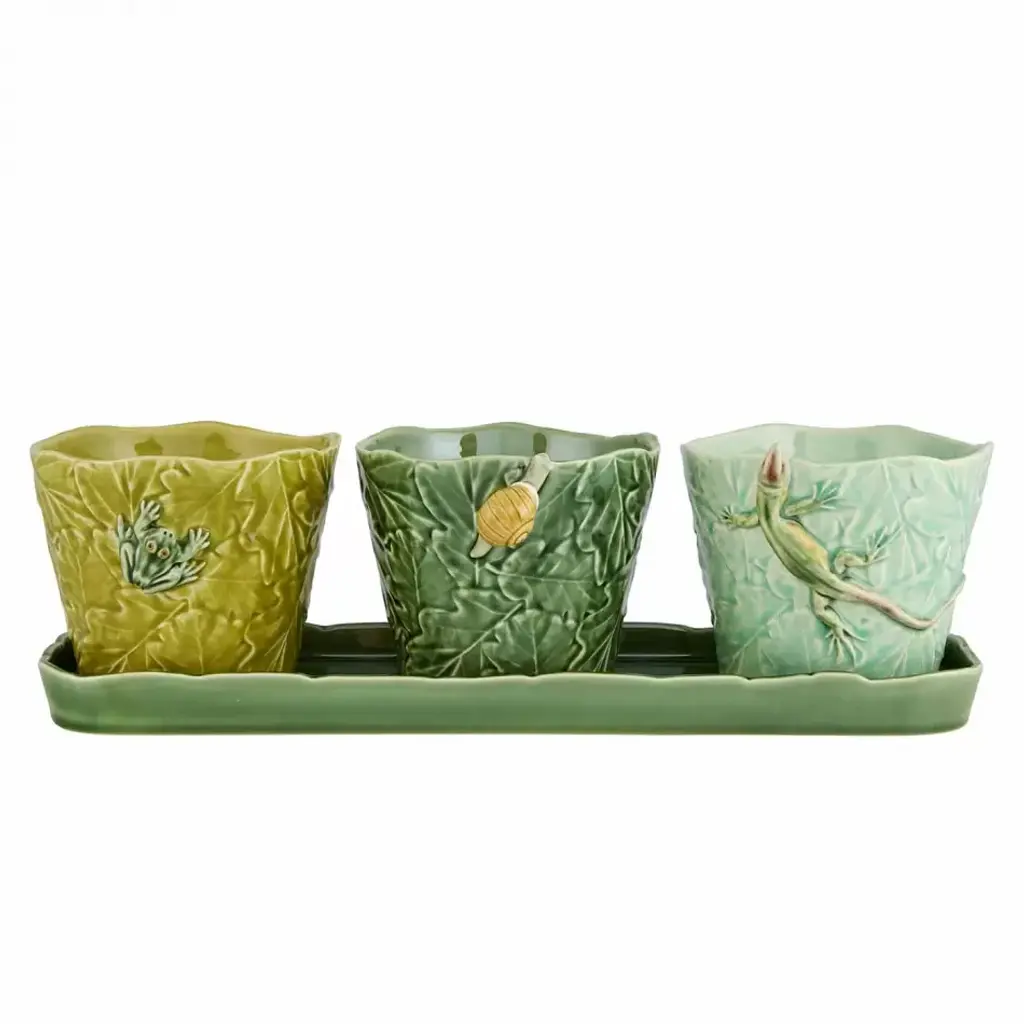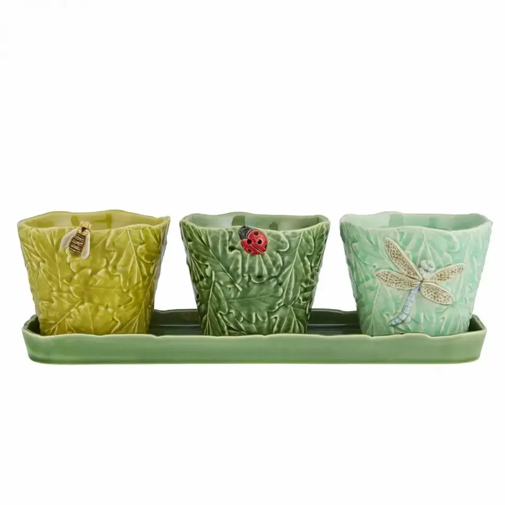 add a touch of floral flair to your table with the bloom salt & pepper set. this whimsical set features two hand-sculpted and hand-painted earthenware shakers - one shaped like a watering can and the other like a potted plant. rubber stoppers ensure mess-free use.