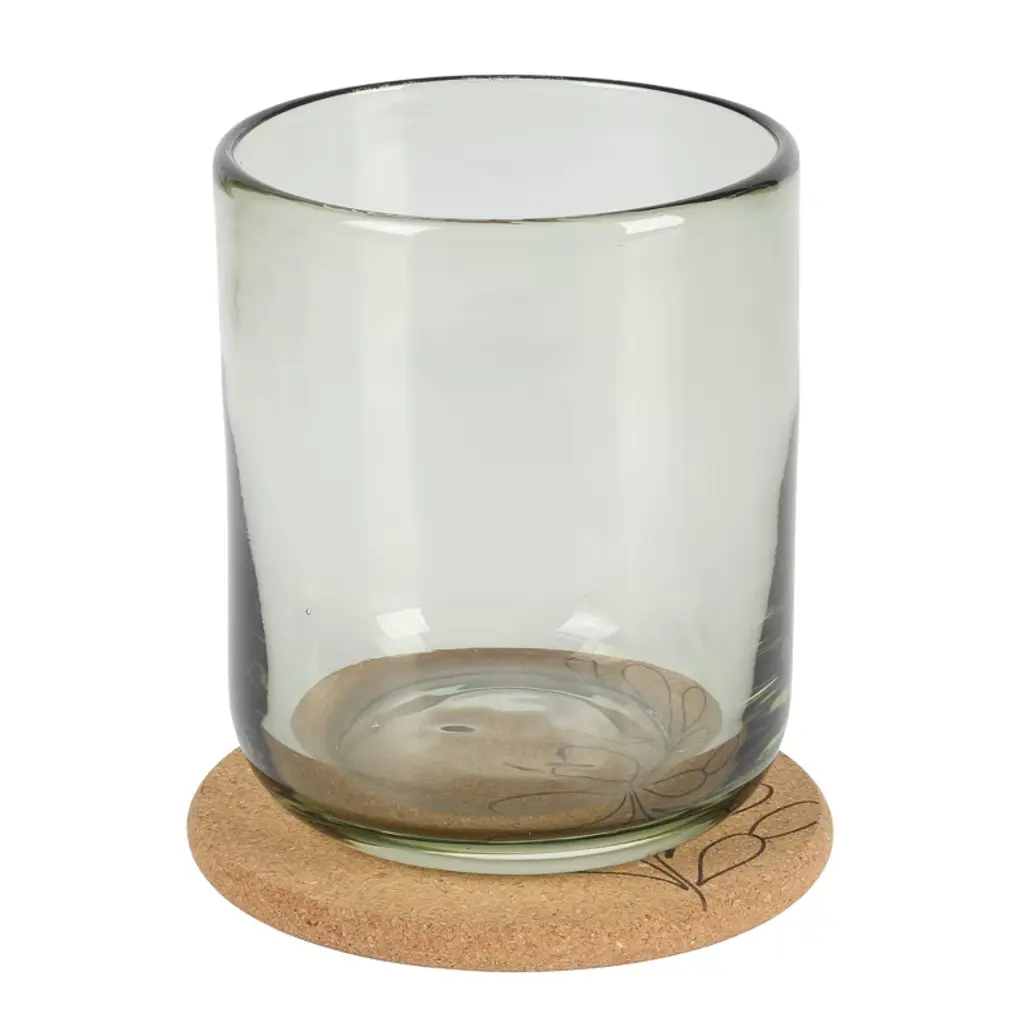 Bloomhouse Sayulita Spring 8 Piece Hand Made 16 Oz Jadeite Colored Glass Double Old Fashioned Set W/ Coasters