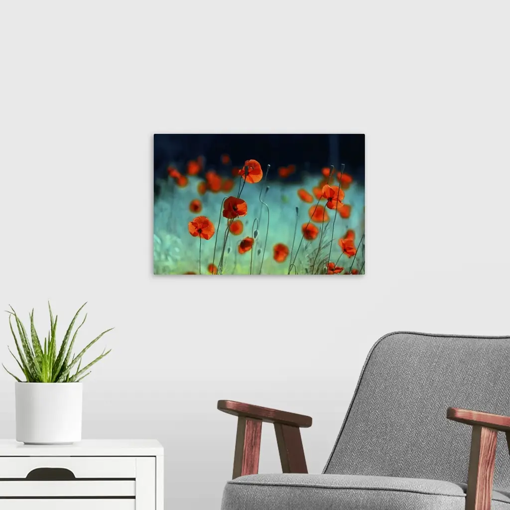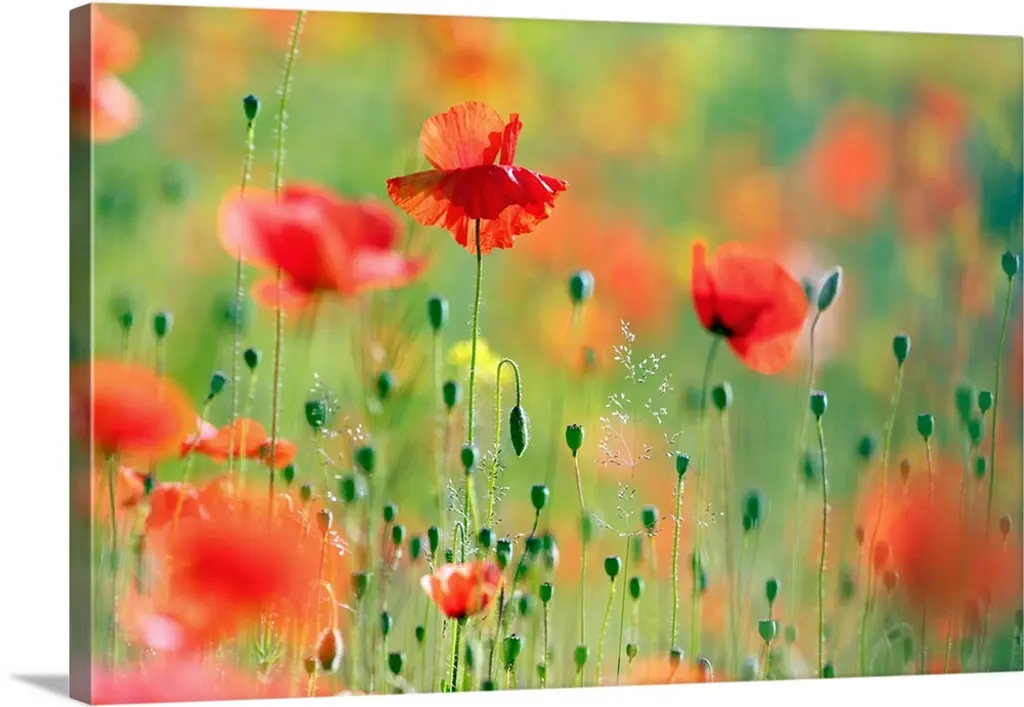 Blooming Red Poppies In A Field In Spring