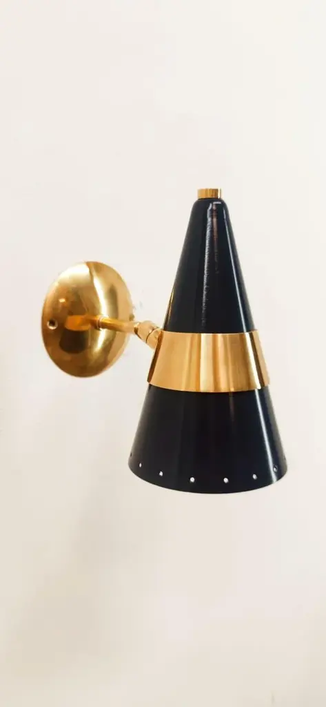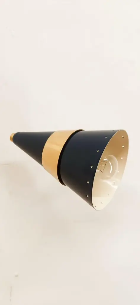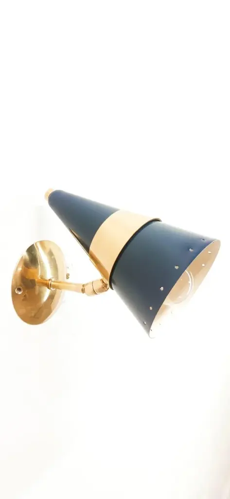 Blue & Gold Adjustable Sconce, in Very Good conditions. Designed 1970 to 1979 Up to 250V (Europe/UK Standard).The wiring of this item may be original and might need replacement, if not specified otherwise.