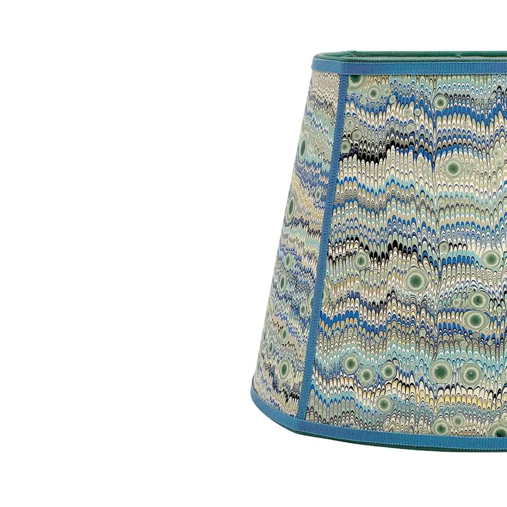 Marbled paper in a wonderful blue and green non-pareil pattern; trimmed in two colors of grosgrain. Available in 2 sizes: (8″ x 8″) x (12″ x 12″) x 9" (12″ x 12″) x (16″ x 16″) x 11" Pictured in (8″ x 8″) x (12″ x 12″) x 9" All shades are made to order, by hand and are not returnable Please be sure to double check sizing before ordering.
