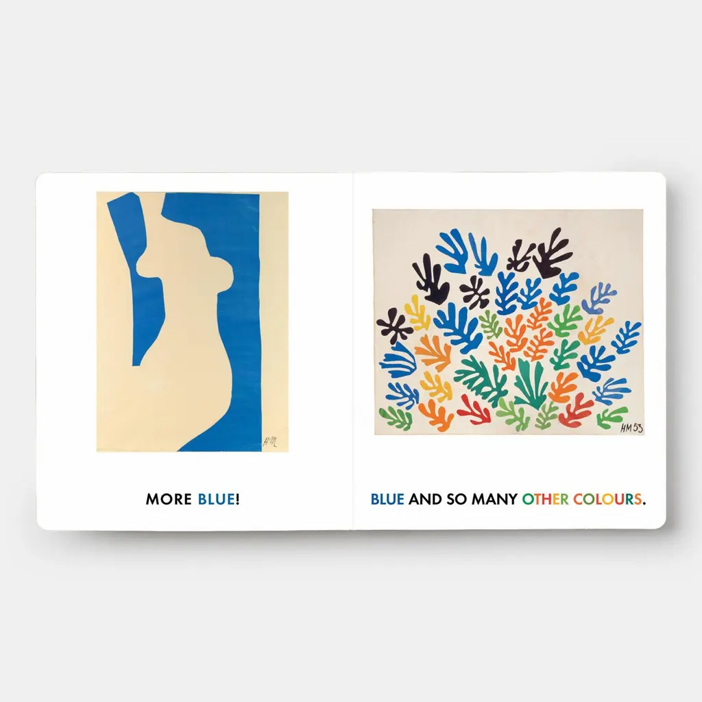 Henri Matisse’s abstract cut-outs are used to teach colors in this innovative read-aloud board bookBlue & Other Colors takes children through Henri Matisse’s color palette, one artwork per page, beginning with blue and returning to it as a familiar refrain throughout. The variance of shapes, depth, and scale of the shapes on each page will keep readers engaged, while the text enriches the reading experience with relatable commentary that encourages conversation.Henri Matisse's innovative use of color has inspired generations of artists. His cutouts – collages made from shapes cut from painted paper in a process he described as ‘painting with scissors’ – have become some of the most admired works of the last century.Through this groundbreaking book, readers will not only learn their colors, but also grow familiar with fine art.Each title in this must-own series of artful read-aloud board uses masterpieces by celebrated artists to teach one of the top early-learning concepts for toddlers. Each concept is explored playfully through a curated selection of beautifully reproduced artworks while the accompanying text enriches the experience with witty, conversational commentary and an ‘about the artist’ text. Companion books in this series feature the art of Pablo Picasso, Ellsworth Kelly, Alexander Calder, and Josef Albers.Ages 1-3