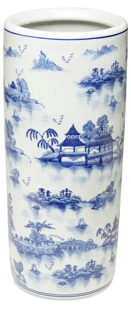 Blue And White Porcelain Landscape Motif Flower Pot 8"