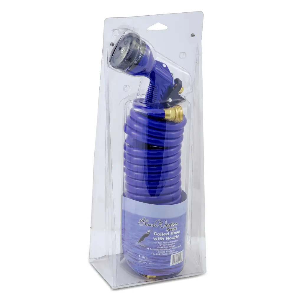 Blue Coiled Hose With Adjustable Nozzle - 50'