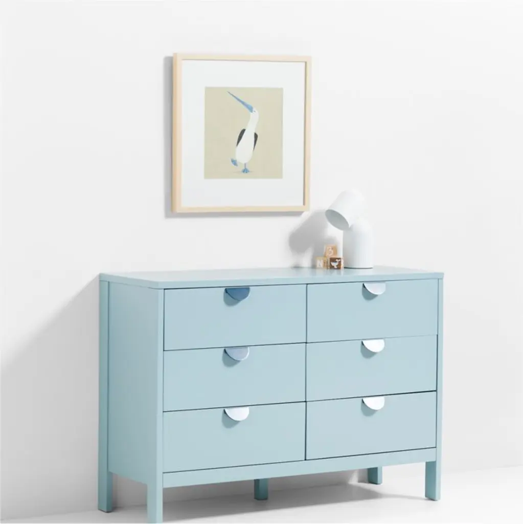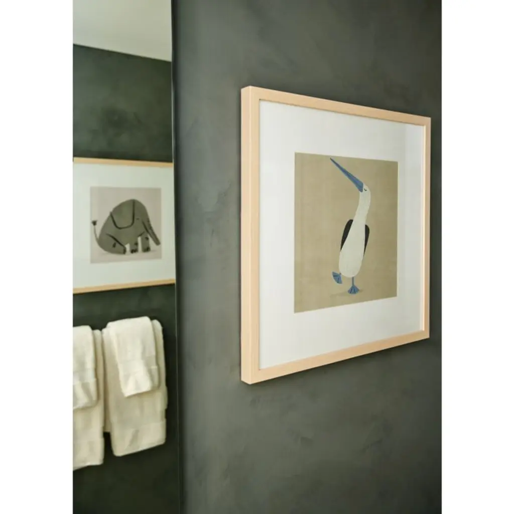 Just try not to smile every time you see this quirky little bird and its self-assured strut. Chicago artist Betsy Siber captures the blue-footed booby's unique charm using fine-line details and a cool-toned palette. Framed with natural wood and complemented by a white mat, this high-quality giclee print is an everyday reminder for kids to stand tall and proud. Put it on display solo or as part of a curated gallery wall in a nursery or playroom.