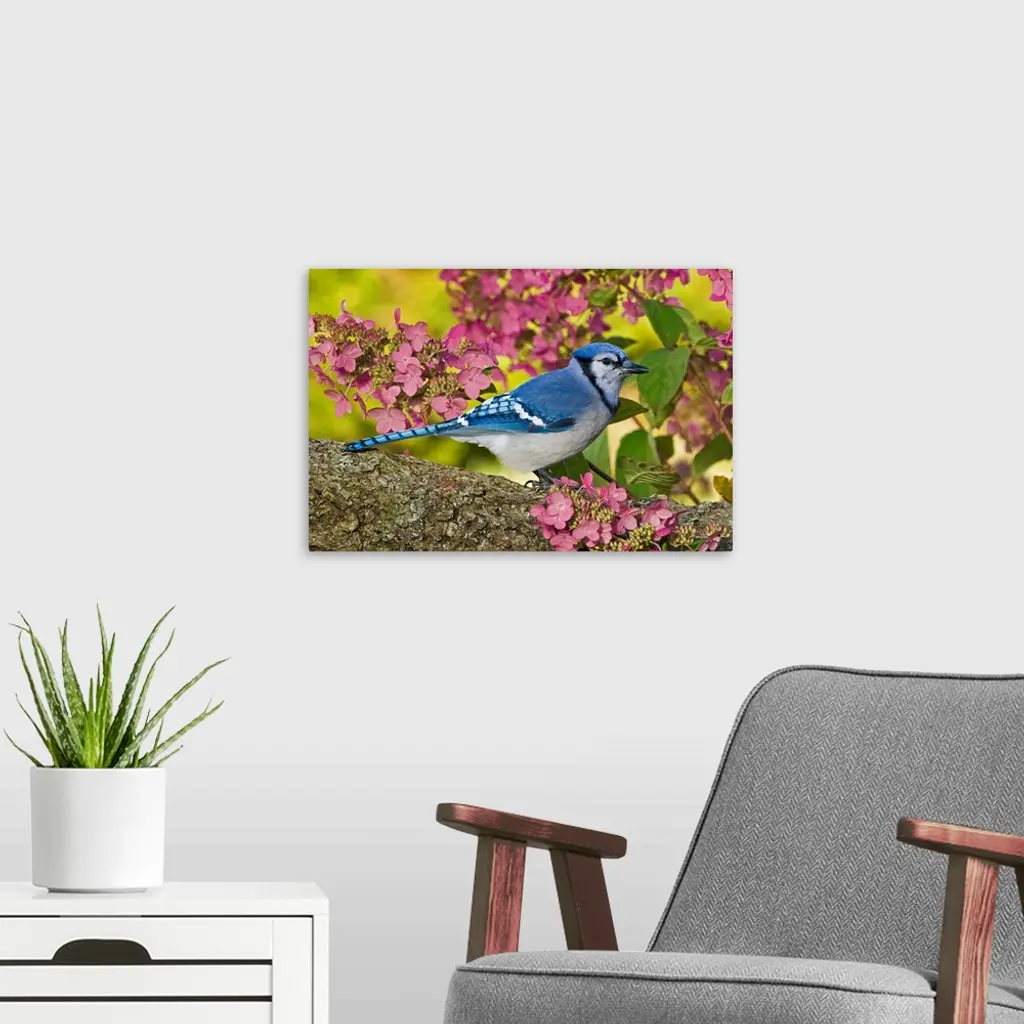 Blue Jay In Backyard Garden In Autumn, Nova Scotia, Canada wall art for home and office decor. Discover canvas art prints, photos, mural, big canvas art and framed wall art in GreatBigCanvas.com's varied collections.