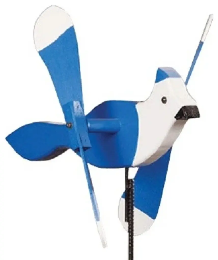 Amish Handmade WhirlybirdsBLUE JAY WIND SPINNEROur Whirlybird Wind Spinners are handmade utilizing premium materials and generational craftsmanship. Constructed With 1" thick premium signboard and vinyl spinning wings. Once crafted, each whirligig gets a hand painted finish that is fully weather resistant ensuring years of ���flight". Perfect lawn/garden display or for any Blue Jays fan, too!Measures (approx./vary): 20"x6"w36"x 1/4" mounting rod includedPremium 1" thick signboardWeather resistant hand painted finishVinyl Whirligig wingsAmish Handmade in the USAPLEASE NOTE: Each is individually handmade-to-order by Amish craftsmen guaranteeing you a unique, true one-of-a-kind piece. Please allow up to 7-10 business day manufacturing time.