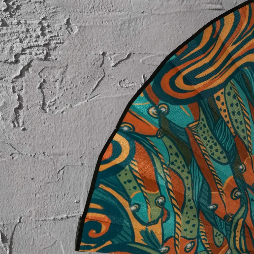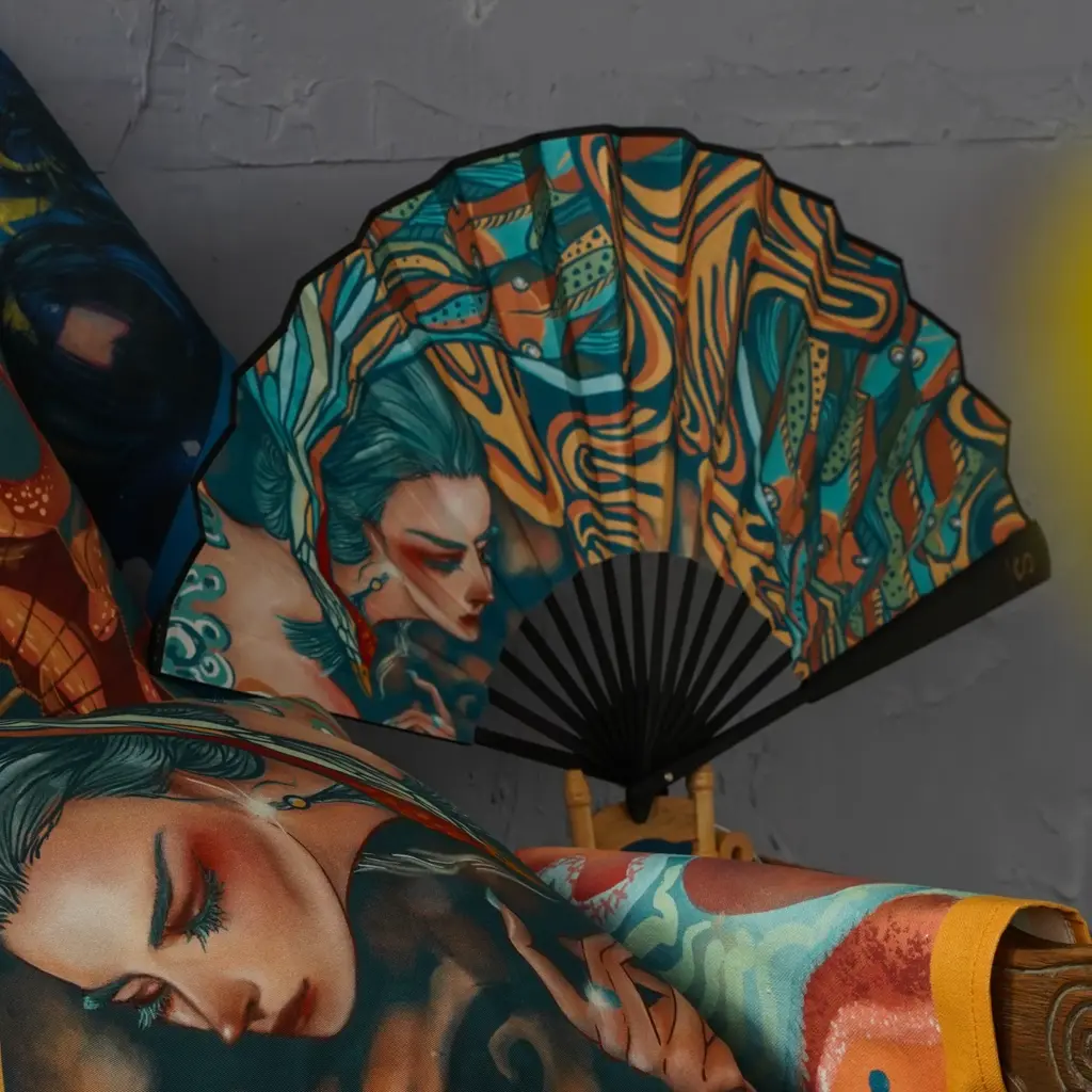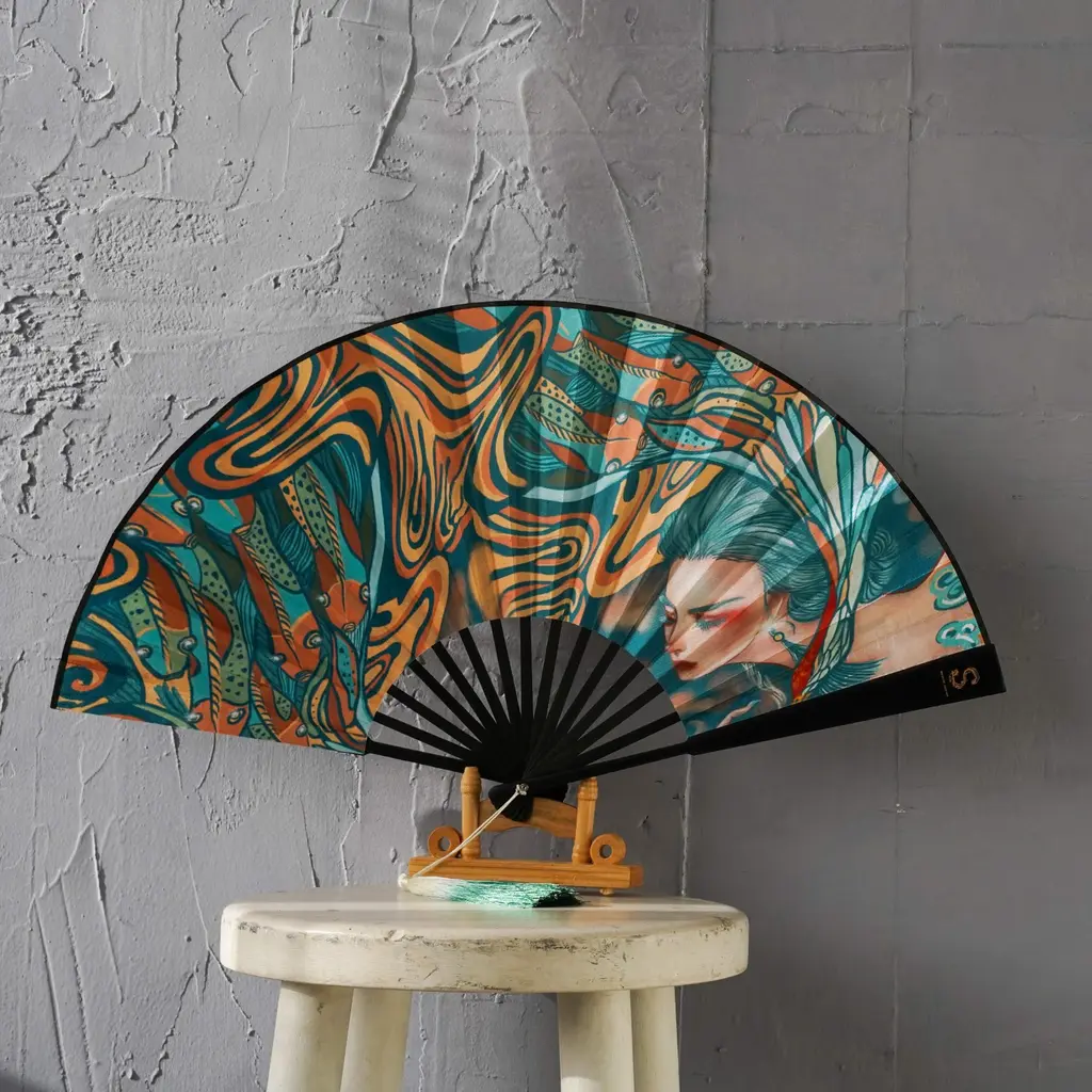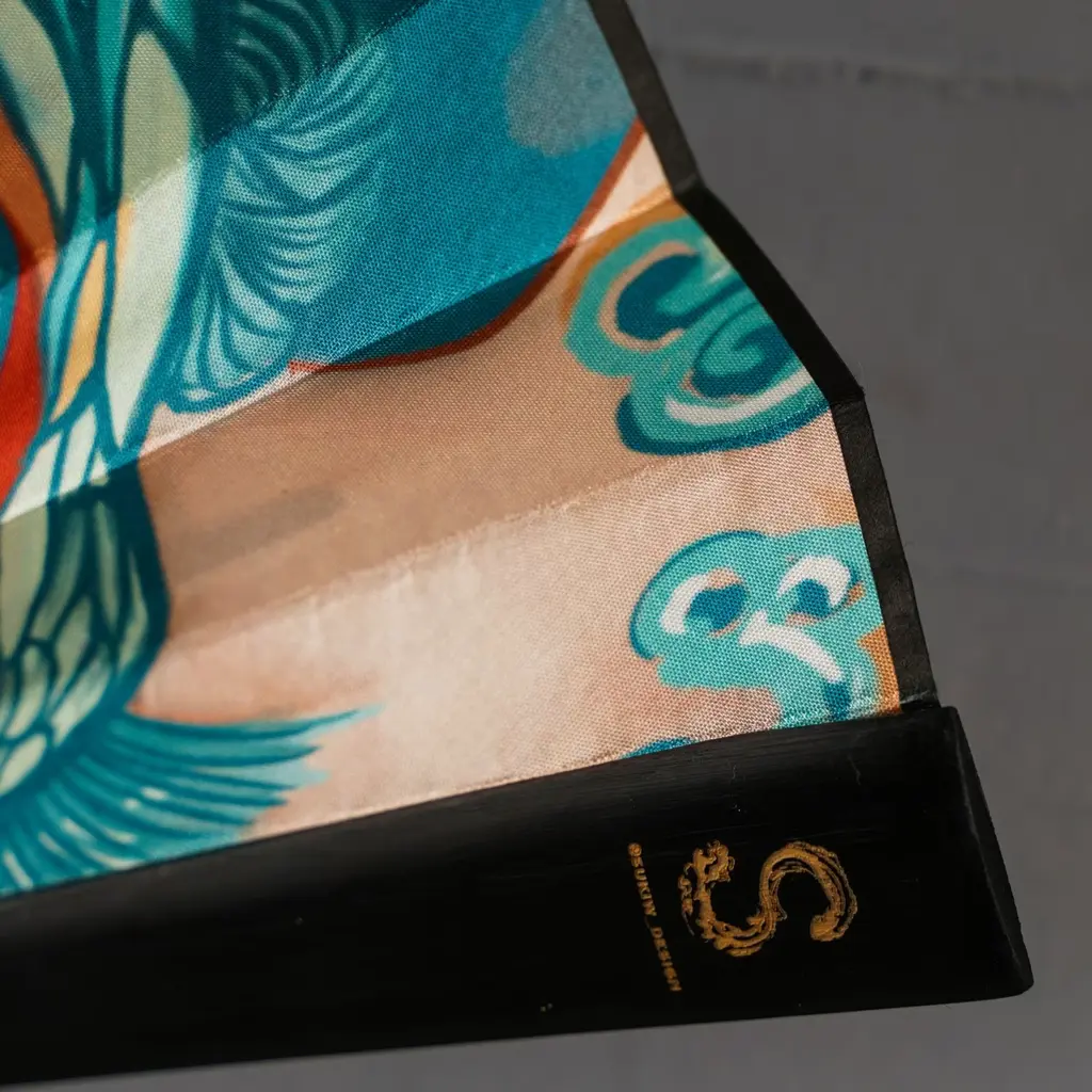 Elevate your space with the elegance of the ‘Blue Maiden’ Holding Fan, a perfect fusion of tradition and artistry. Crafted from luxurious silk satin and fine wood, its intricate design reflects timeless craftsmanship. Lightweight and foldable, this fan is both a functional accessory and a striking decorative piece. Complete with a removable teal tassel and a bamboo stand, it’s an exquisite addition to your collection or a thoughtful gift for those who appreciate refined beauty.