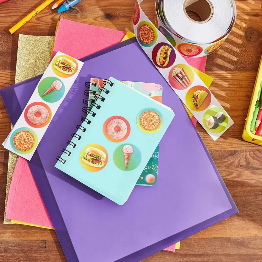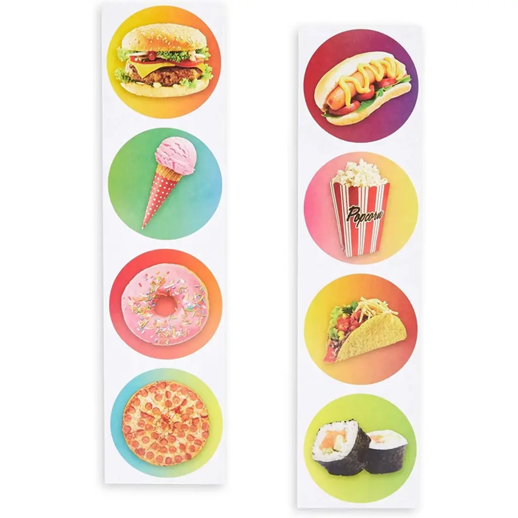 Includes 1000 count fast food stickers on a roll; 1.5 inches diameter. 8 Designs: cheese burger, ice cream cone, donut, pizza, hot dog, popcorn, taco, and sushi. Ideal for DIY crafts, scrapbooking, embellishing gift bags, invitations, and more. Fun party favors for kids foodie themed parties, birthday parties, etc. Use to seal invitation envelopes, letters, and greeting cards.