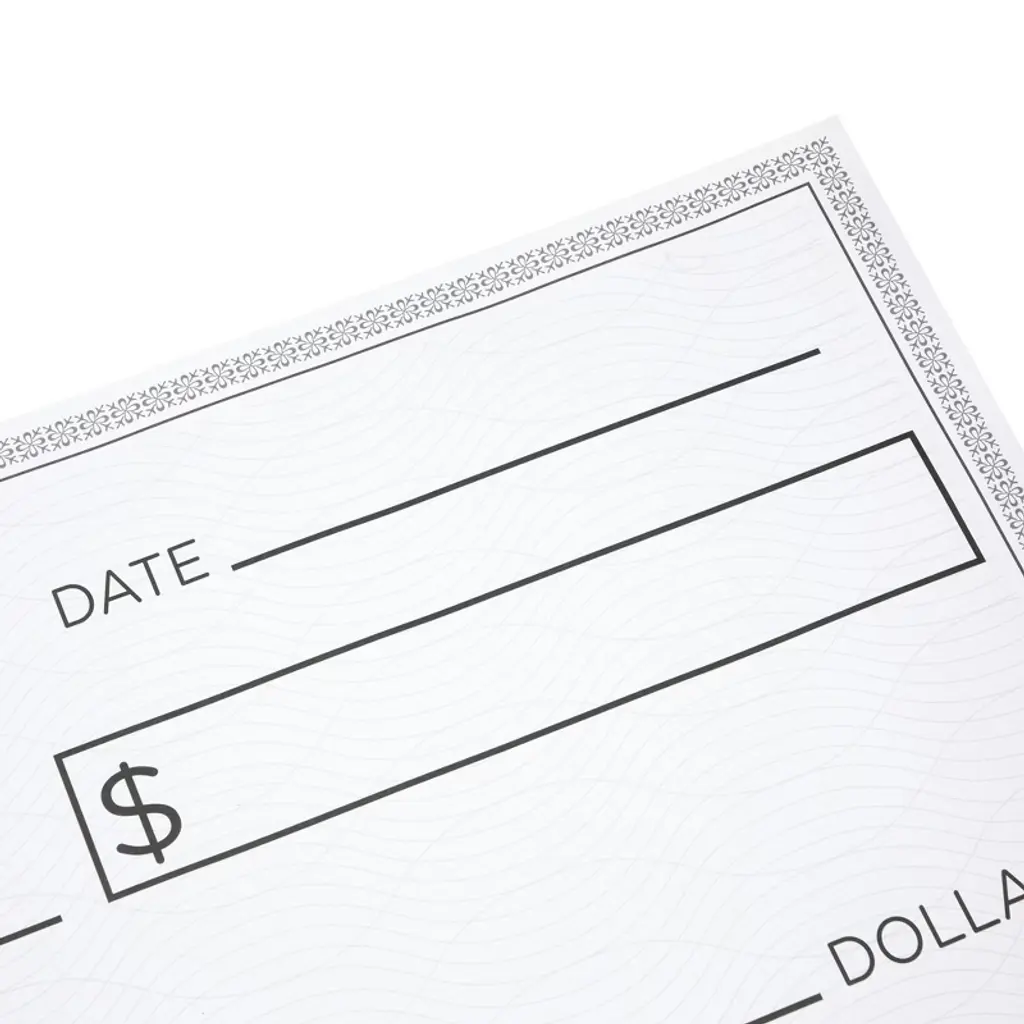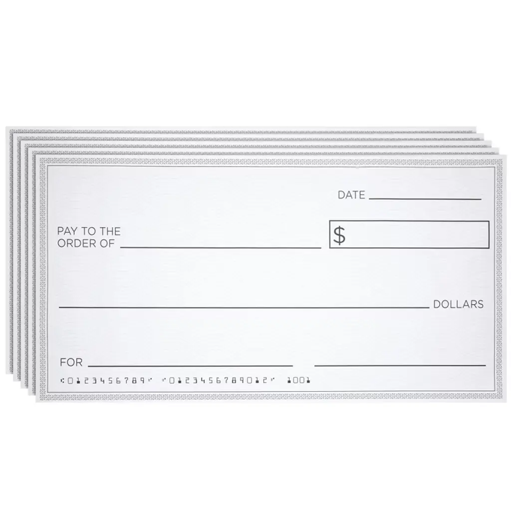 Whether you're awarding a raffle winner, making a donation, or presenting an award, these fake blank checks will definitely come in handy. Each check measures 30 x 16 inches with a sizeable amount of blank space to fill in the date, dollar amount, recipient, and purpose for the check. Simply use decal stickers or permanent marker to customize the oversized checks for an upcoming company event, fundraiser, or award show.
