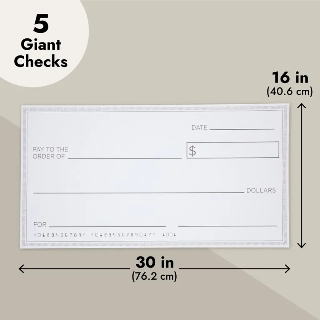 Blue Panda 5 Pack Giant Check For Presentations, Awards, Prizes, Fundraisers, Donations, Endowments, 30 X 16 In