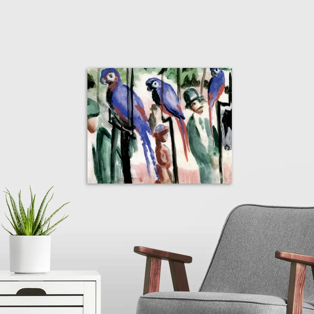 BAL41025 Blue Parrots (w/c on paper) by Macke, August (1887-1914); watercolour on paper; Stadtisches Museum, Mulheim, Germany; German, out of copyright