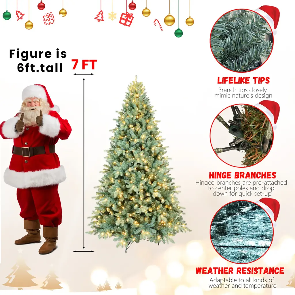 Blue Pe/pvc Mixed Automatic Christmas Tree (With Lights/without Lights) - Green-With Lights - 7 Foot