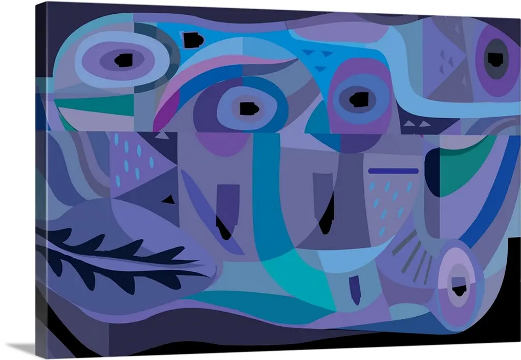 A digital abstract landscape with circular shapes in vibrant shades of purple.