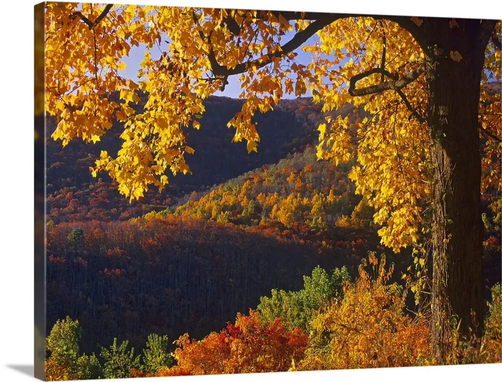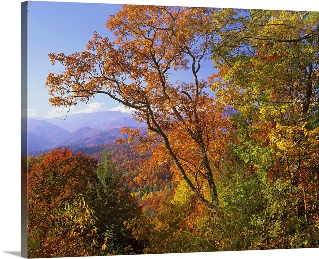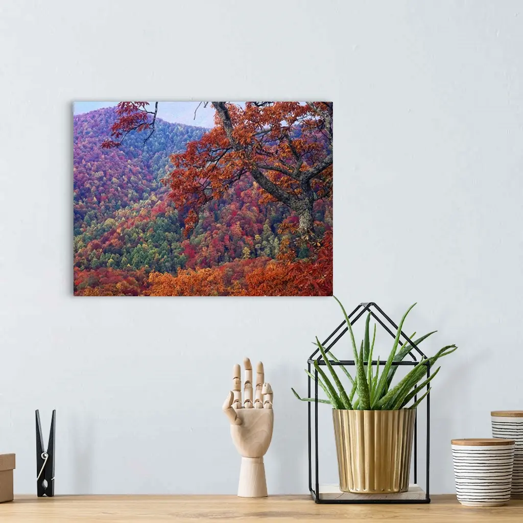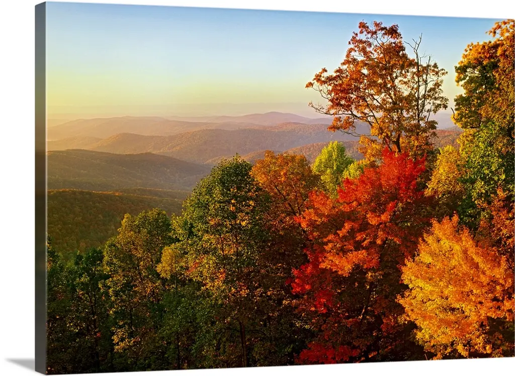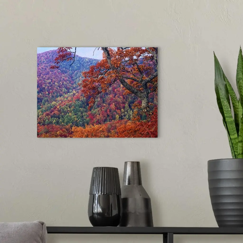 Blue Ridge Range with autumn deciduous forest, near Buck Creek Gap, North Carolina wall art for home and office decor. Discover canvas art prints, photos, mural, big canvas art and framed wall art in GreatBigCanvas.com's varied collections.