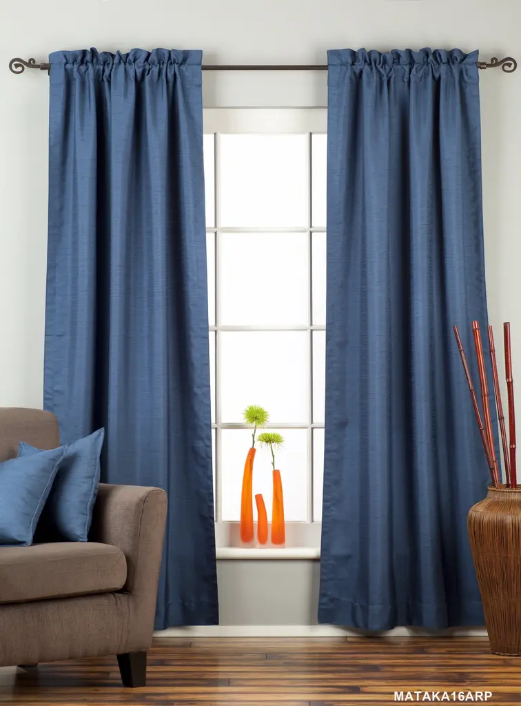 Blue Rod Pocket Matka Raw Silk Curtain / Drape / Panel - Piece