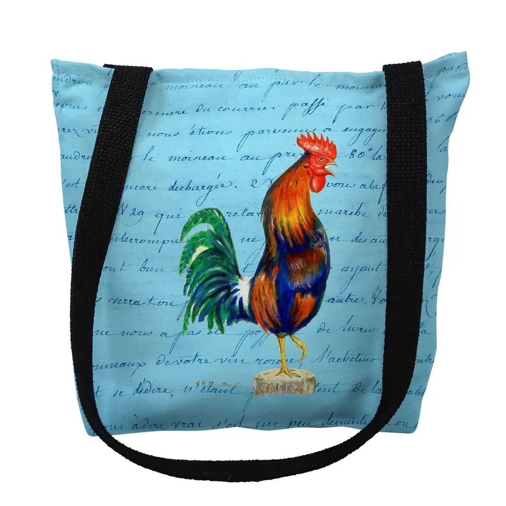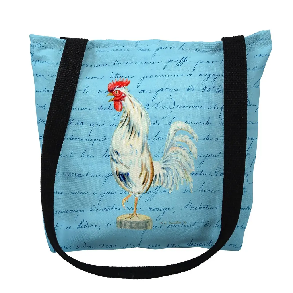 Blue Rooster On Blue Script Small Tote Bag 13x13 - 16 Inches X 16 Inches