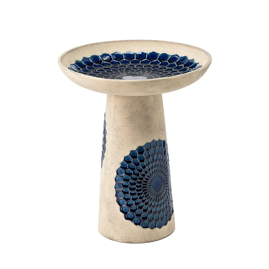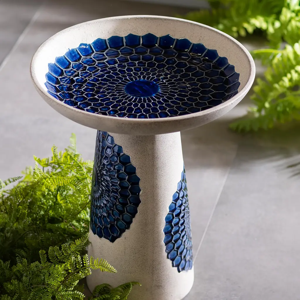 This beautifully crafted ceramic bird bath is designed to invite a symphony of birds into your garden, creating a captivating outdoor oasis. With its two-tone color palette and a refined, glazed finish, this birdbath adds elegance to your outdoor space. The Blue Tile Birdbath is not just a decorative piece but also a functional addition to your garden. Its carefully designed shape and size ensure that it provides a comfortable and inviting space for birds to bathe and drink. The glazing not only enhances its visual appeal but also makes it effortless to clean, so you can enjoy the beauty of nature without the hassle of maintenance. Bring the beauty of nature to your garden with our exclusive Blue Tile Birdbath, where style meets functionality, and where the songs of birds become a part of your daily life.