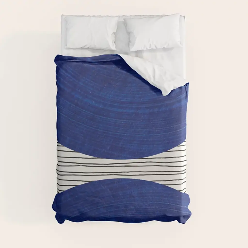 Blue Tones Linen Texture Simple Minimal Abstract Duvet Cover