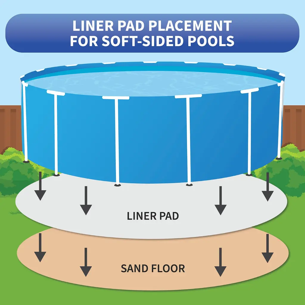 Above-ground pool liner pads are essential accessories designed to enhance the longevity and enjoyment of your pool. These pads serve as a protective barrier between the pool liner and the ground, preventing damage from sharp objects like rocks or other debris that could puncture or tear the liner. By eliminating the bumps and unevenness of the ground, liner pads reduce the risk of injuries and enhance the swimming experience. Installation is simple, simply roll-out the pad before installing the liner. Select the size that matches your pool dimensions. The pad is backed by a 90-day warranty (nut grass damage is not covered under the warranty). Please note that the vinyl liner is sold separately.