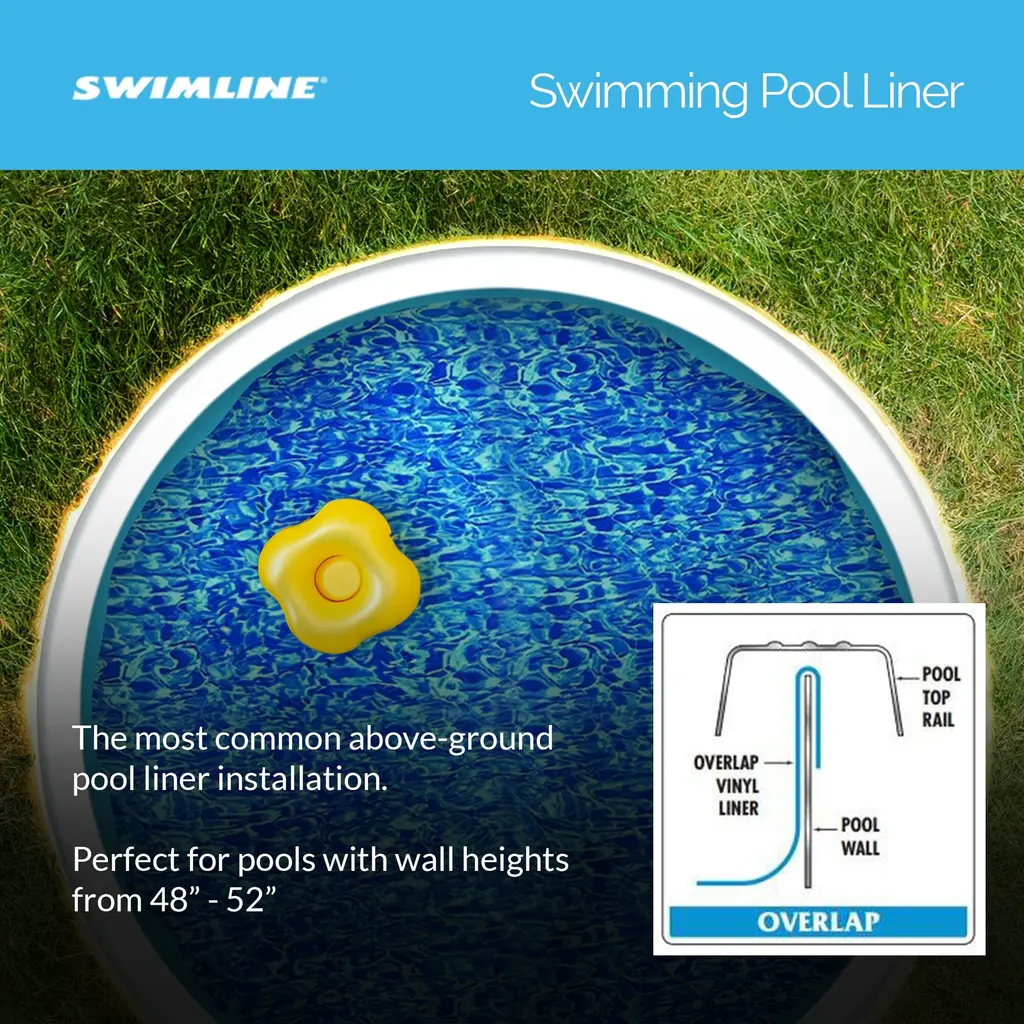 Enhance the timeless appeal of your above-ground pool with this vibrant, solid-blue vinyl liner. Its borderless design is simple and classic, making it an ideal choice for any pool. Made from premium, standard-gauge vinyl, this liner features UV inhibitors to protect against fading and damage from sunlight and water. The welded seams ensure a smooth surface and long-lasting durability. Backed by a 15-year warranty.