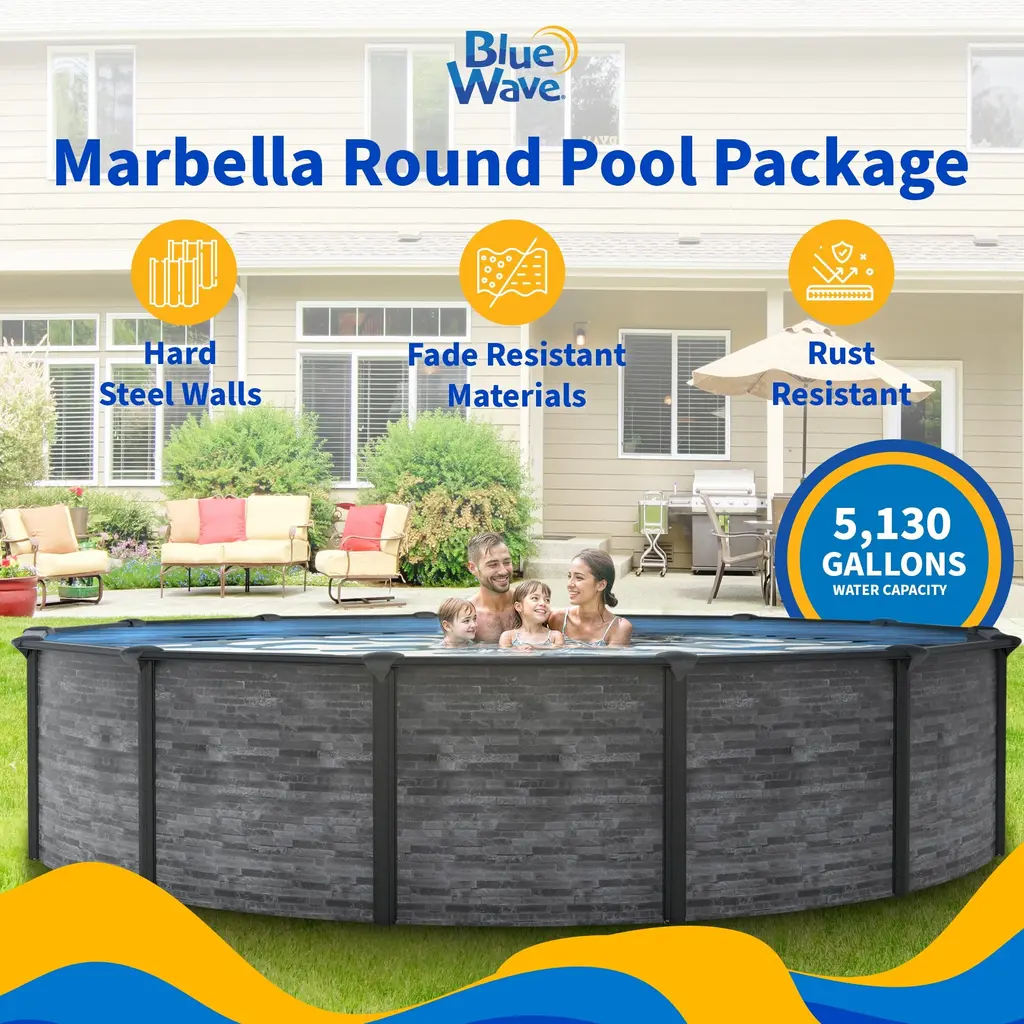 Blue Wave Marbella 52-In Deep Steel Wall Above Ground Swimming Pool W/ 6-In Top Rail Pool Package - 15ft Round