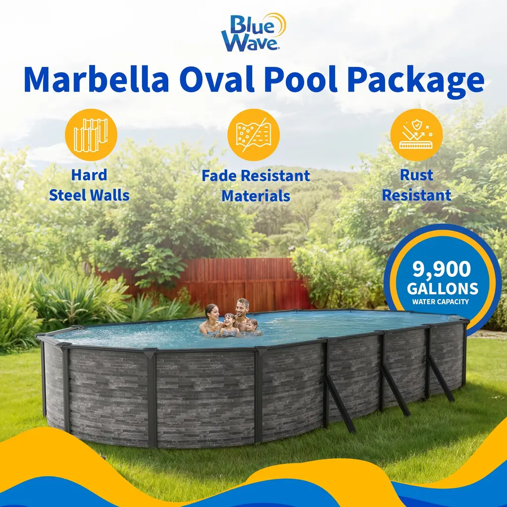 Blue Wave Marbella 52-In Deep Steel Wall Above Ground Swimming Pool W/ 6-In Top Rail Pool Package - 15x30ft Oval