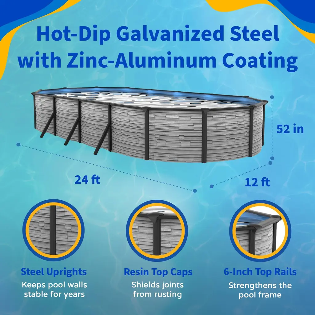 Blue Wave Montilla 52-In Deep Steel Wall A/g Swimming Pool W/ 6-In Top Rail Pool Package - 12x24-Ft Oval
