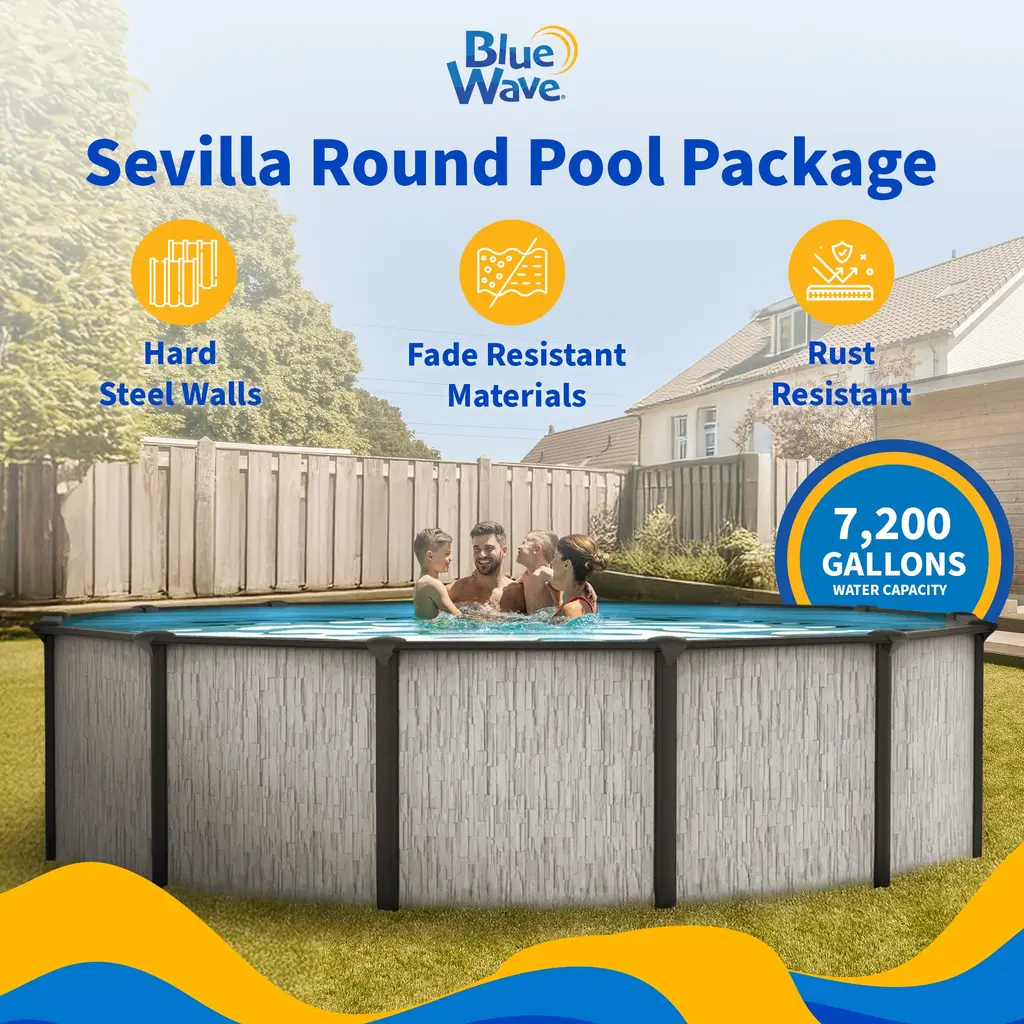 Blue Wave Sevilla 52-In Deep Steel Wall A/g Swimming Pool W/ 6-In Top Rail Pool Package - 18-Ft Round