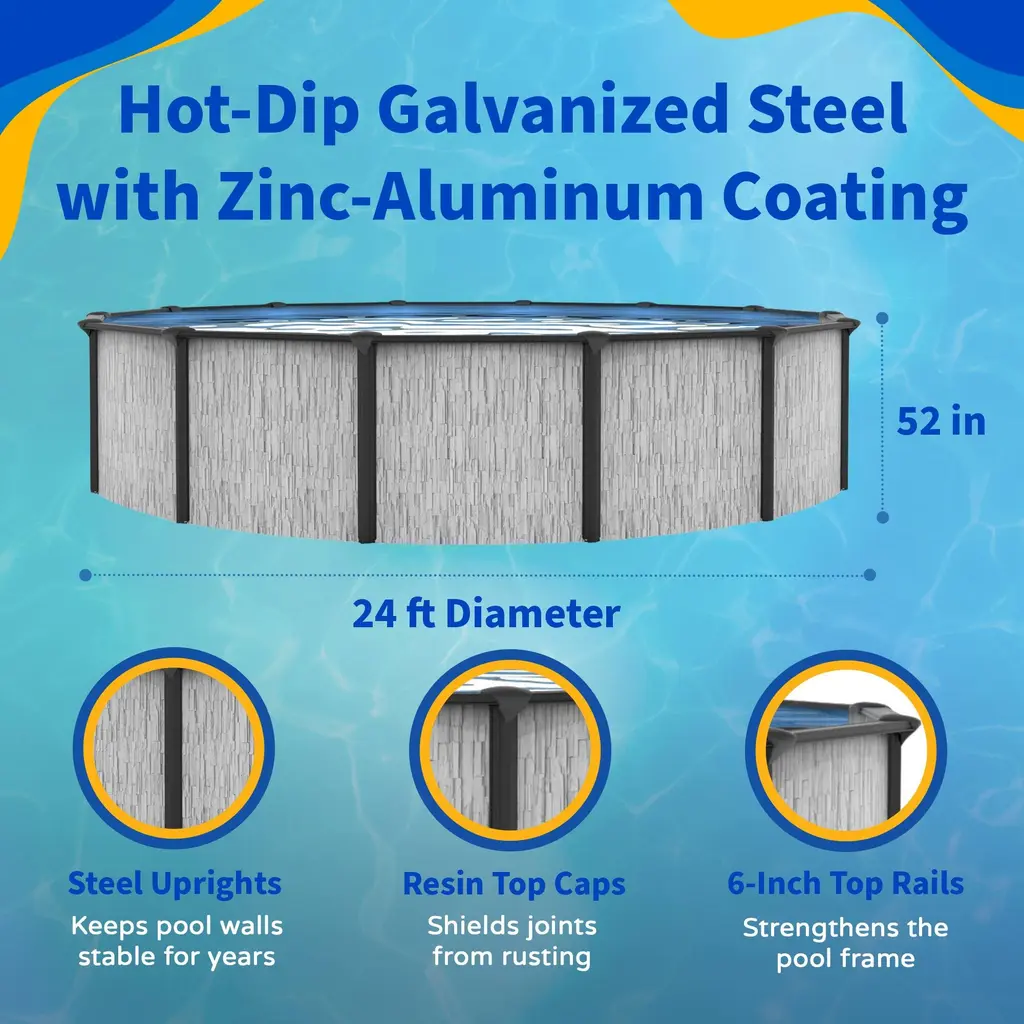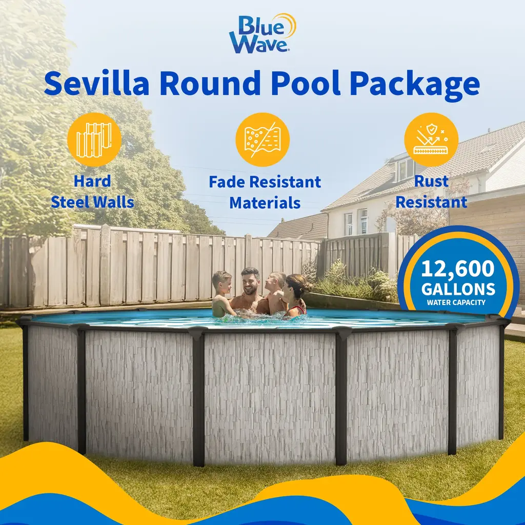 Blue Wave Sevilla 52-In Deep Steel Wall A/g Swimming Pool W/ 6-In Top Rail Pool Package - 24-Ft Round