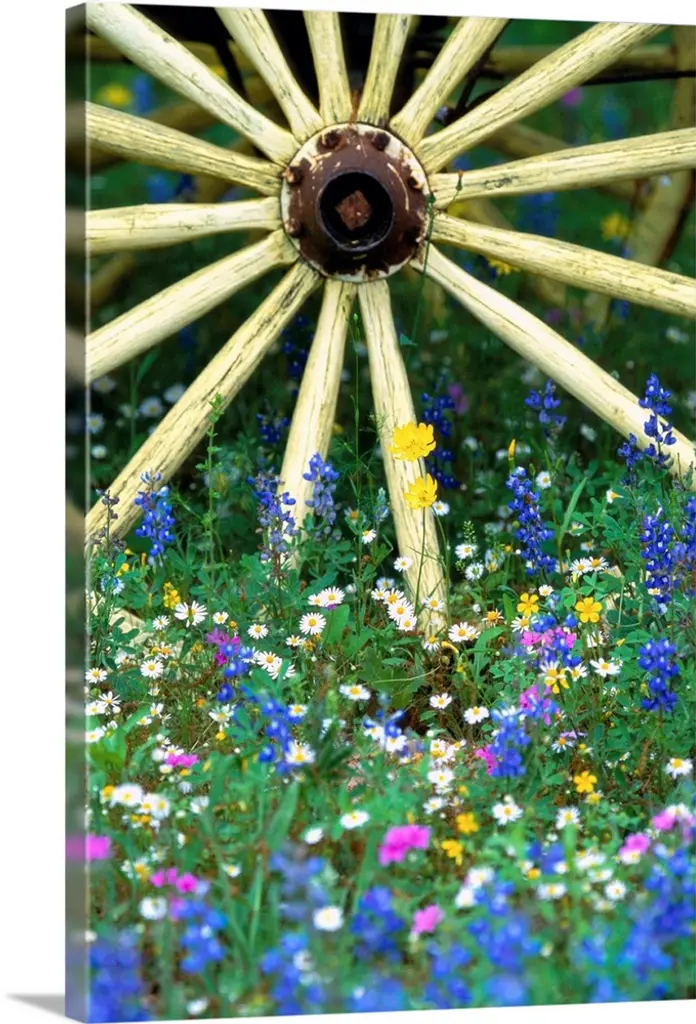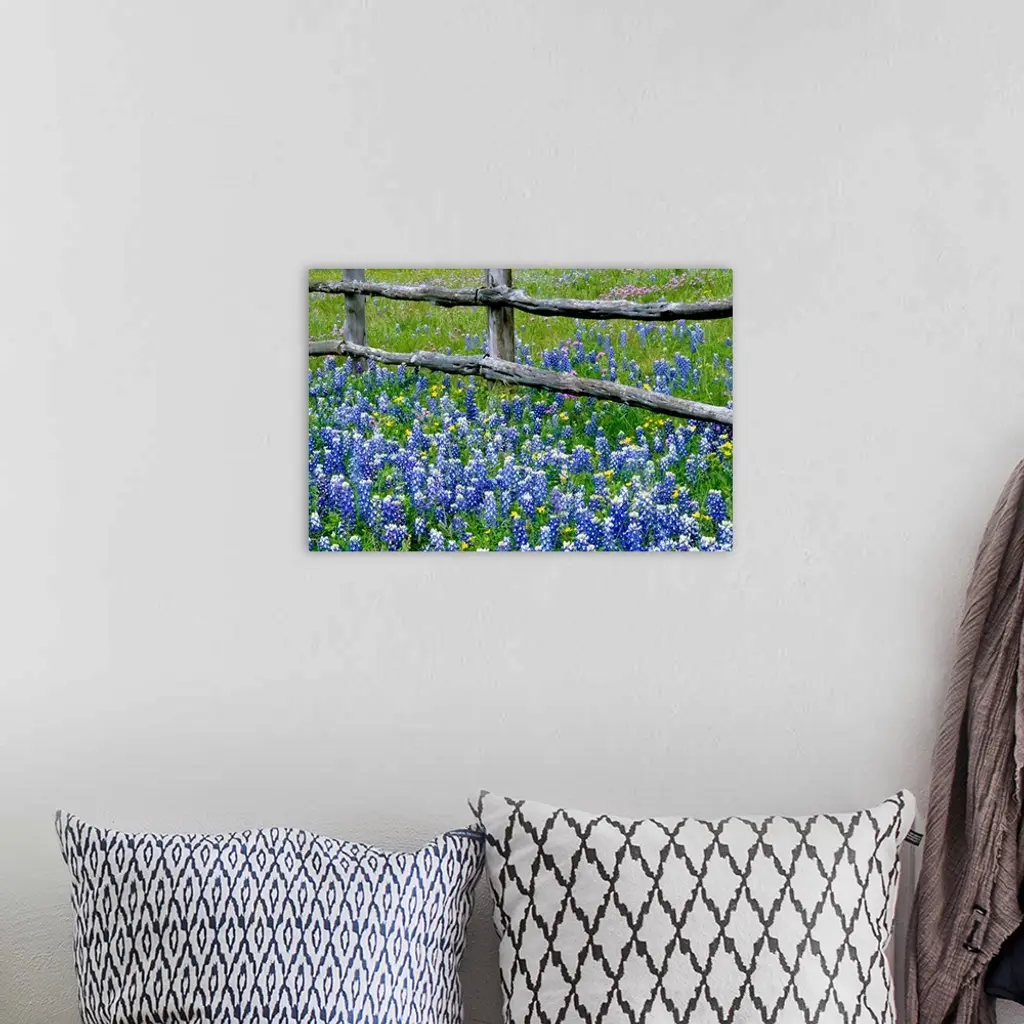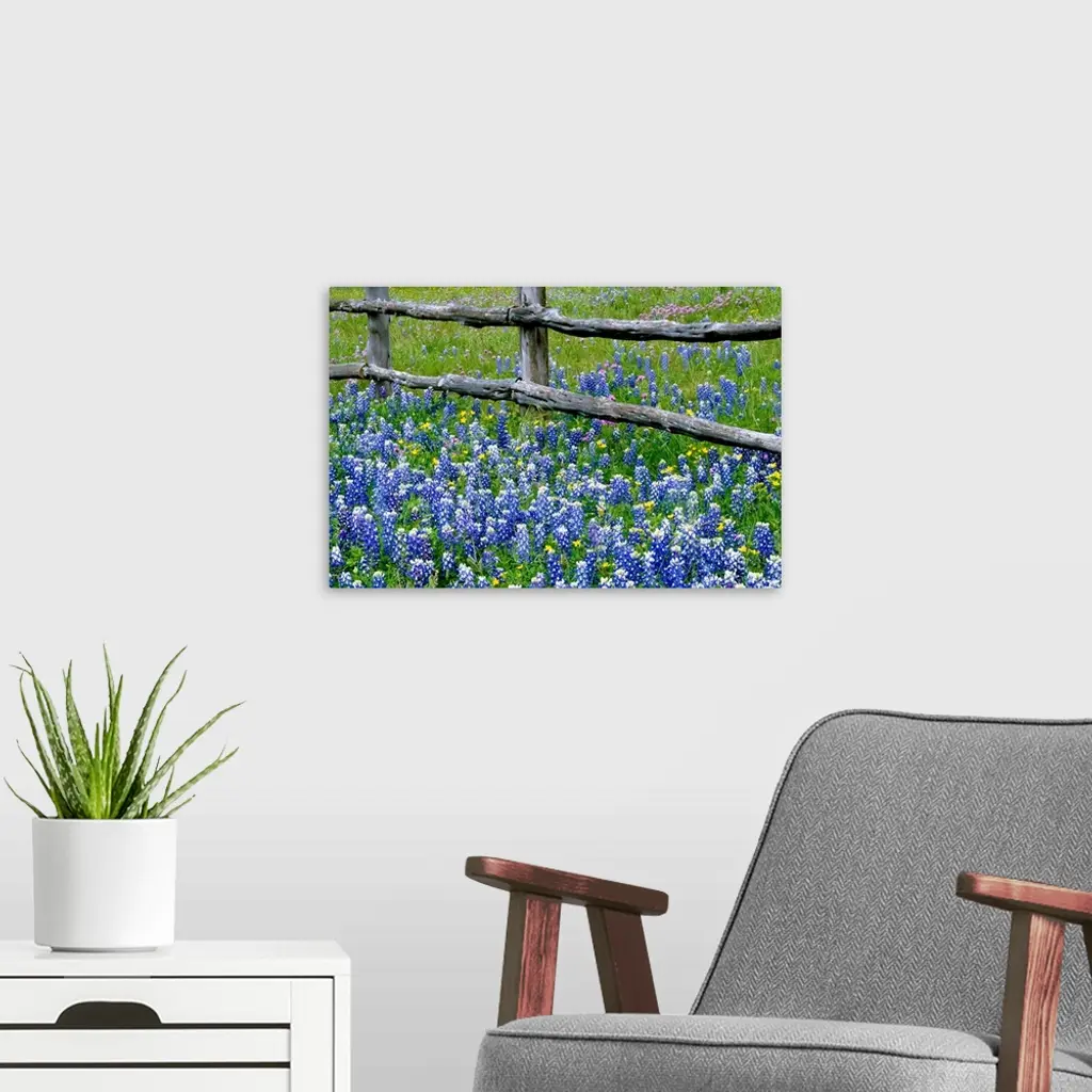 Bluebonnet Flowers Blooming Around Weathered Wood Fence, Texas