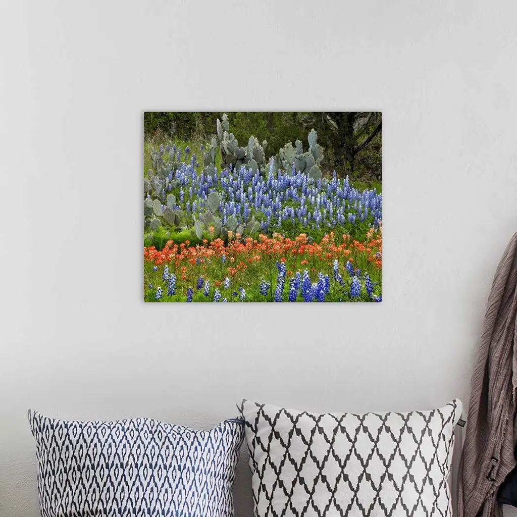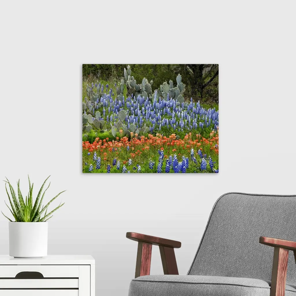 Bluebonnet, Paintbrush And Pricky Pear Cactus, Texas
