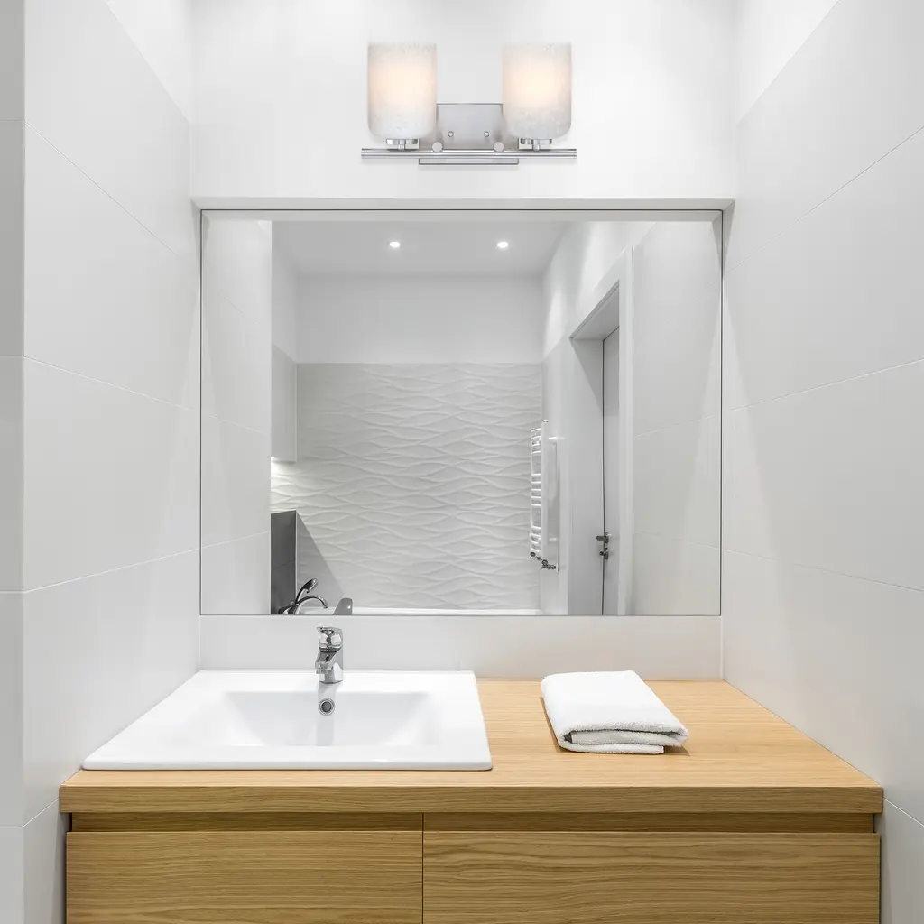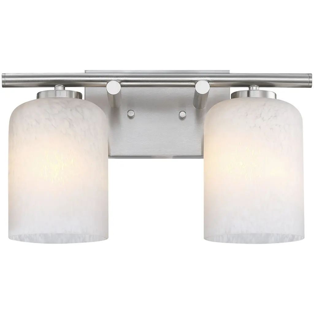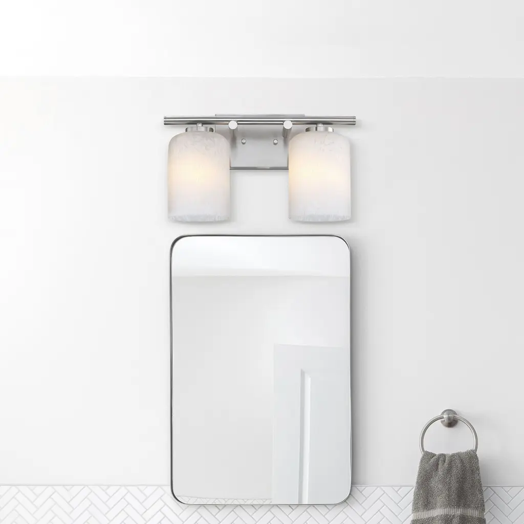 Featuring elegant etched cloud glass shades, the Bluestone Ridge bath and vanity collection is sure to enhance the spaces where you relax and care for yourself. With two finishes and a modern yet classic style, Bluestone Ridge is sure to match nearly any interior decor. Mount these pieces with the shades facing up or down, and enjoy them for years as they illuminate your bathroom or bedroom. This family is easy to install - instructions and mounting/wiring hardware are provided right in the box.