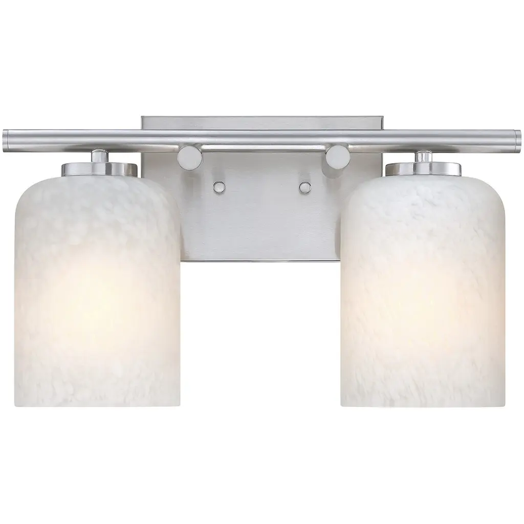Featuring elegant etched cloud glass shades, the Bluestone Ridge bath and vanity collection is sure to enhance the spaces where you relax and care for yourself. With two finishes and a modern yet classic style, Bluestone Ridge is sure to match nearly any interior decor. Mount these pieces with the shades facing up or down, and enjoy them for years as they illuminate your bathroom or bedroom. This family is easy to install - instructions and mounting/wiring hardware are provided right in the box.