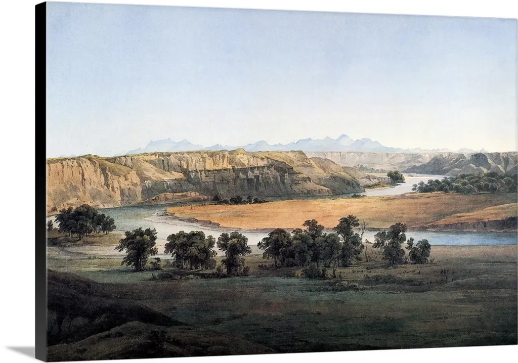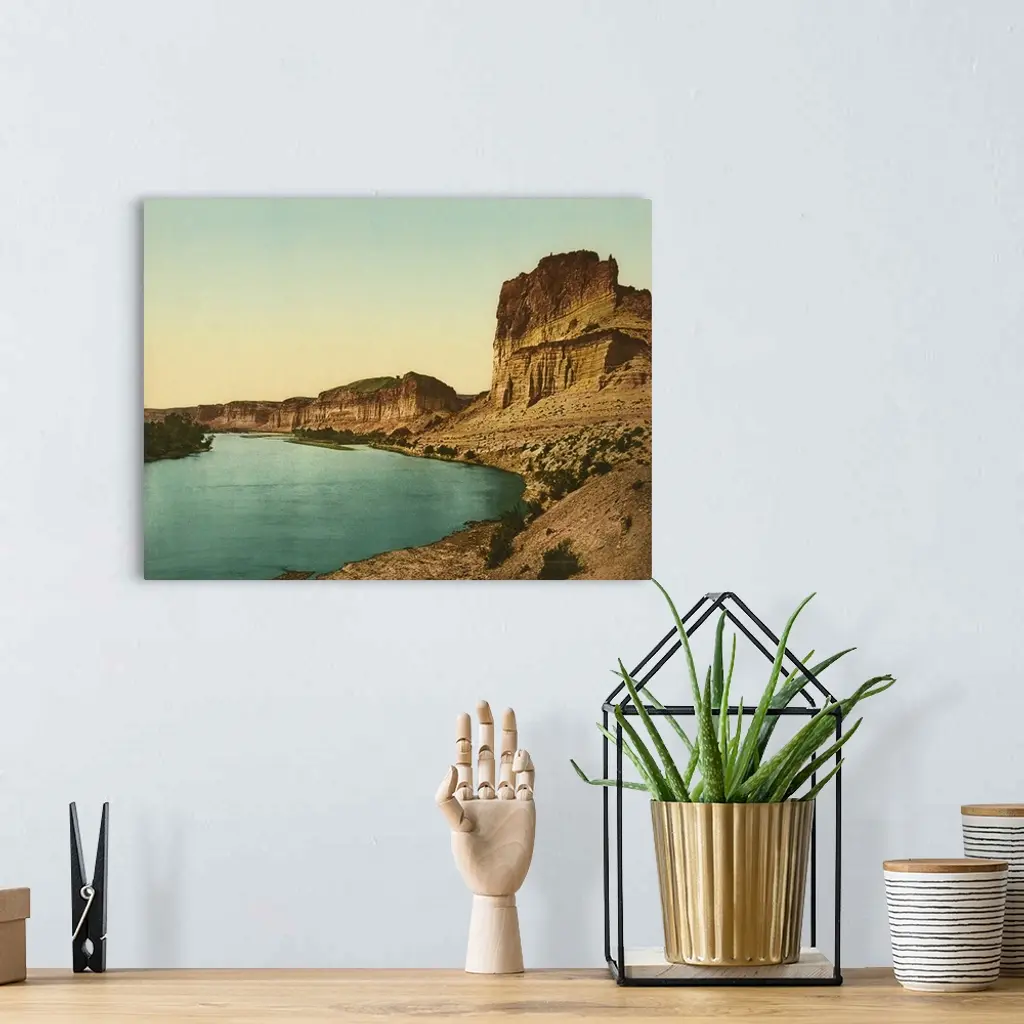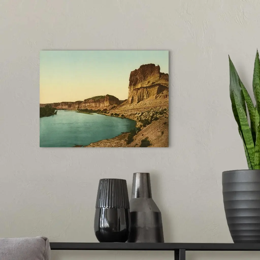 Hand colored photograph of bluffs of the green river.