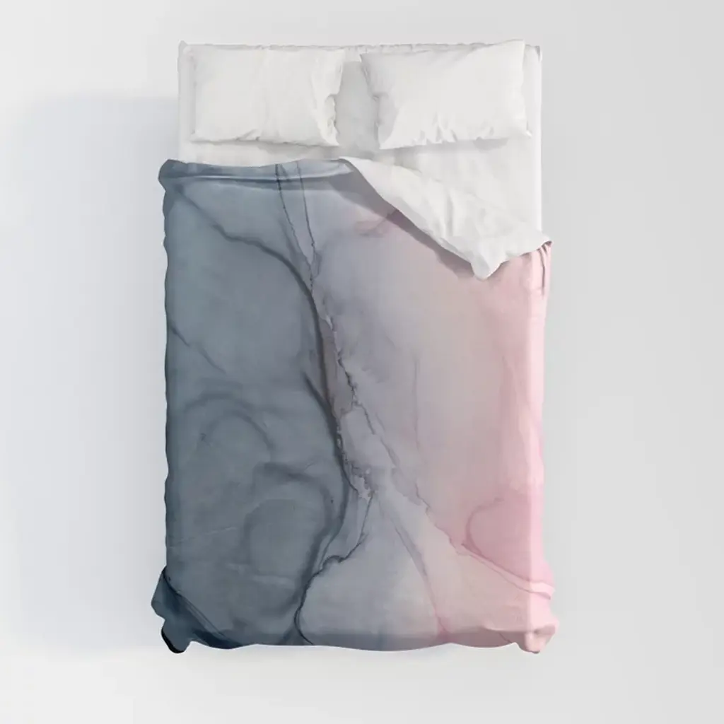 Blush And Payne's Gray Abstract Split Duvet Cover