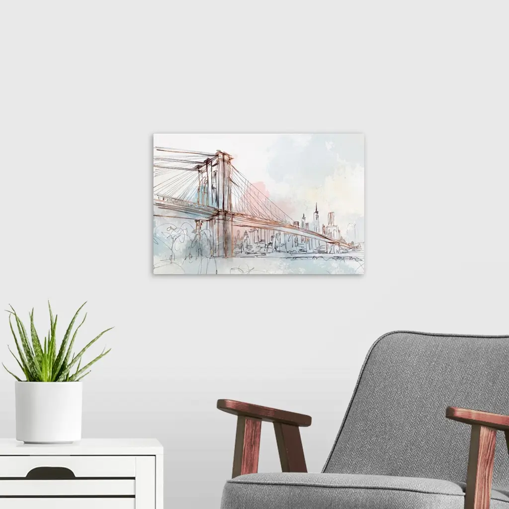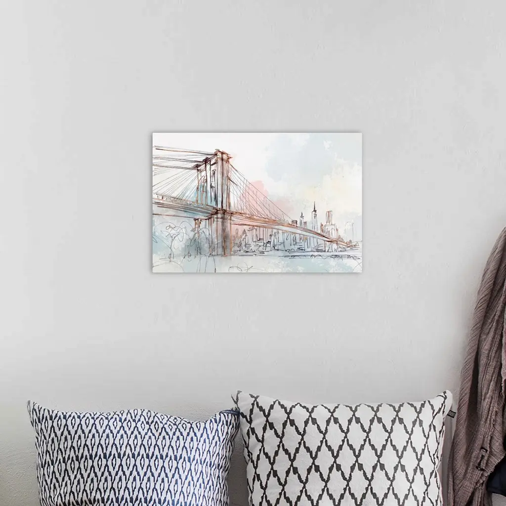 Blushing Brooklyn Bridge wall art for home and office decor. Discover canvas art prints, photos, mural, big canvas art and framed wall art in GreatBigCanvas.com's varied collections.