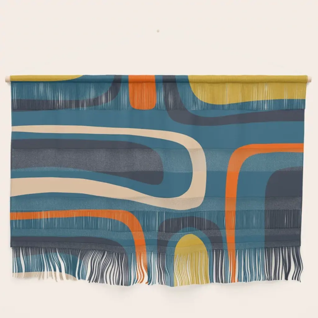 Bo Kaap Abstract Pattern In Moroccan Teal Ochre Olive Orange Mustard Wall Hanging